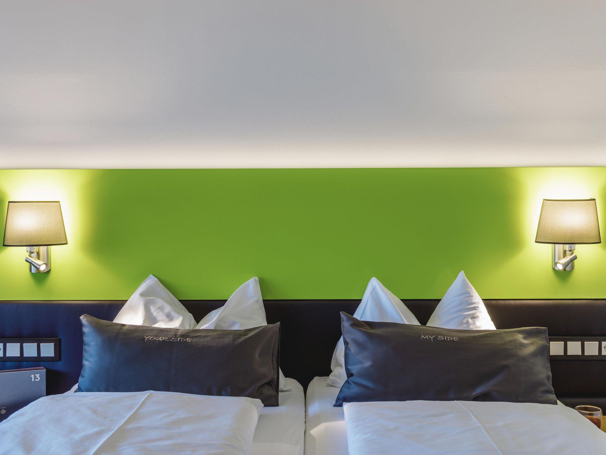 Sie brauchen mehr Abstand? Kein Problem, getrennt aufgestellte Betten sind hier möglich. Bei Bedarf ist noch Platz genug, um für den Nachwuchs ein Zustellbett vorzubereiten.