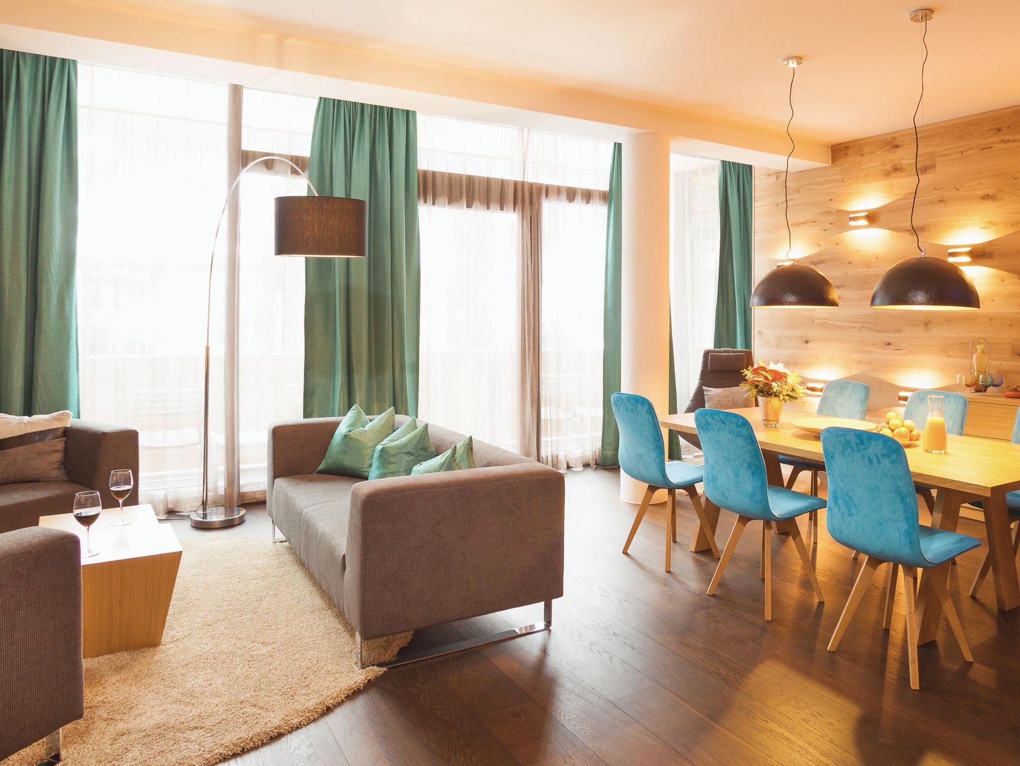 Bodenständigkeit und großzügiger Lifestyle schließen einander nicht aus. Der beste Beweis: unsere Suite GROUND FLOOR SPA mit Terrasse zum Salzburger Platz und privatem Spa-Bereich samt finnischer Sauna, Wellness-Dusche und Entspannungszone. Was unser größtes Zimmer sonst noch zu bieten hat? Einen großen Wohnbereich mit 47'' LED TV, eine moderne Kitchenette (keine voll ausgestattete Küche), zwei Schlafzimmer mit 32'' LED TV, zwei Badezimmer mit Walk In Dusche und WC, Safe und WLAN.