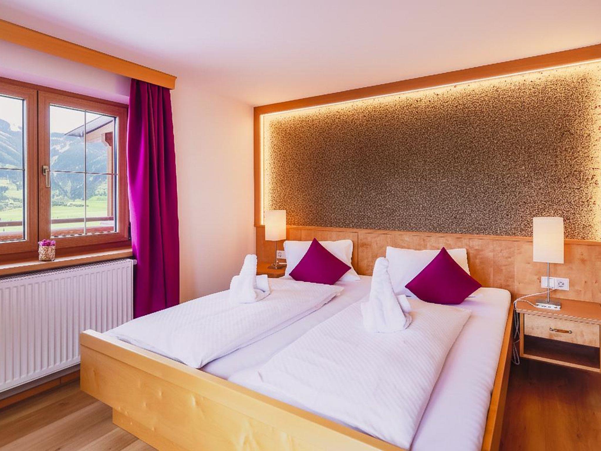 In unseren modern gemütlichen Zimmern aus hellem Massivholz genießt ihr viel Platz, warme Farben und eine wunderbar frische, komfortable Einrichtung mit Dusche/WC, Flat-TV, Wlan, Föhn, Handtuchtrockner und Balkon Richtung Tal und Bergseite. In unseren Familienzimmern mit 2 seperaten Schlafraümen bieten noch Platz für bis zu 2 Kindern.