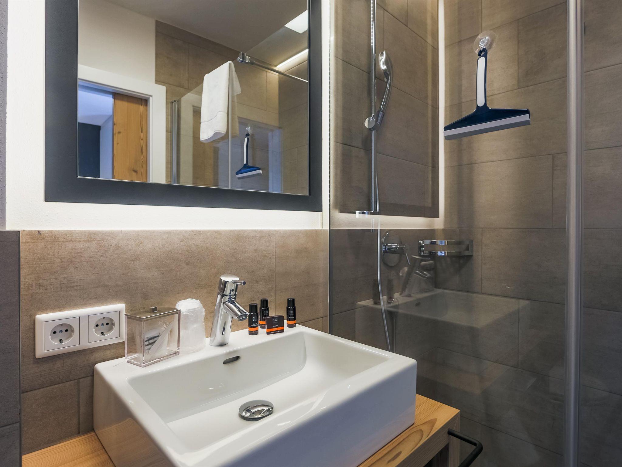 • Skiaufbewahrung mit Spinden, Schuhwärmer und frei zugänglicher Waschraum befinden sich im Erdgeschoß