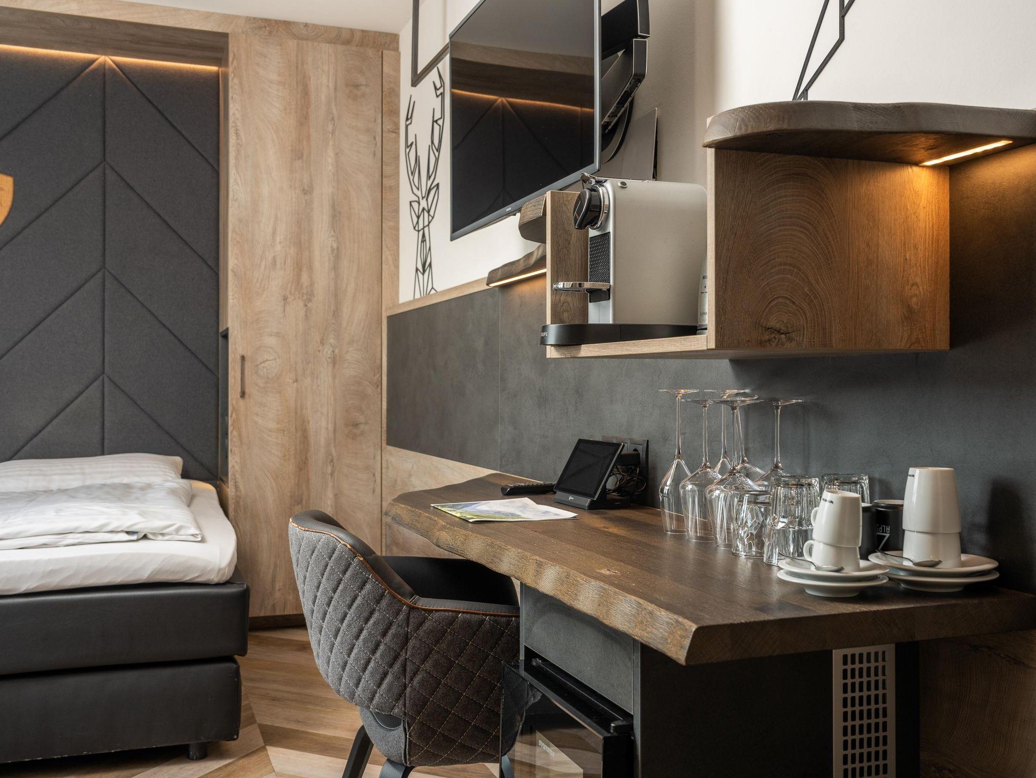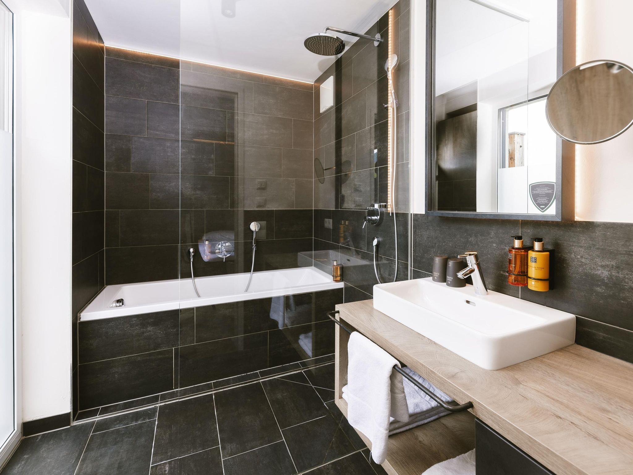 Das Superior Doppelzimmer ist das richtige Zimmer für einen Urlaub zu zweit. Die moderne Einrichtung im alpinen Stil schafft eine erholsame Atmosphäre. Im Zimmer finden Sie ein komfortables Bett und ein Badezimmer mit Badewanne und WC. Auf Ihrem privaten Balkon können Sie die frische Luft genießen.