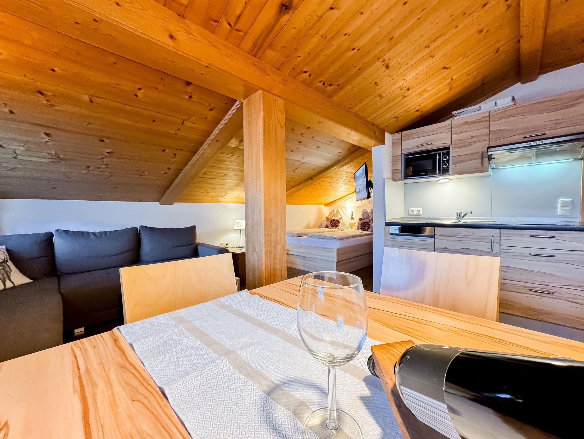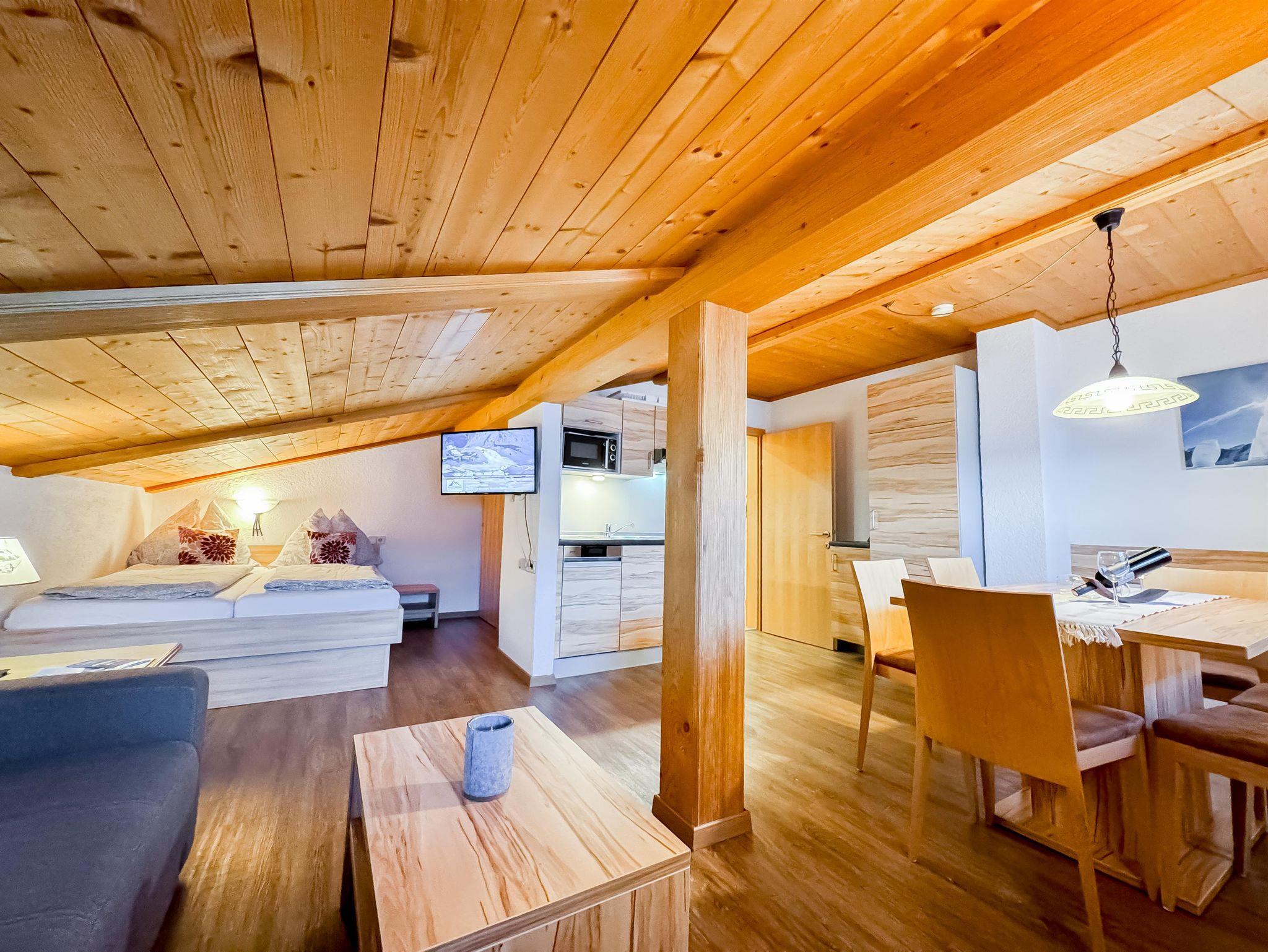 Dieses komfortable Appartement mit gemütlicher Mansarde bietet reichlich Platz für Familien oder Freunde und lädt zum Wohlfühlen ein. Der großzügige Wohnraum verfügt über eine voll ausgestattete Küche, eine ausziehbare Couch sowie ein Doppelbett – perfekt zum Entspannen und Beisammensein.