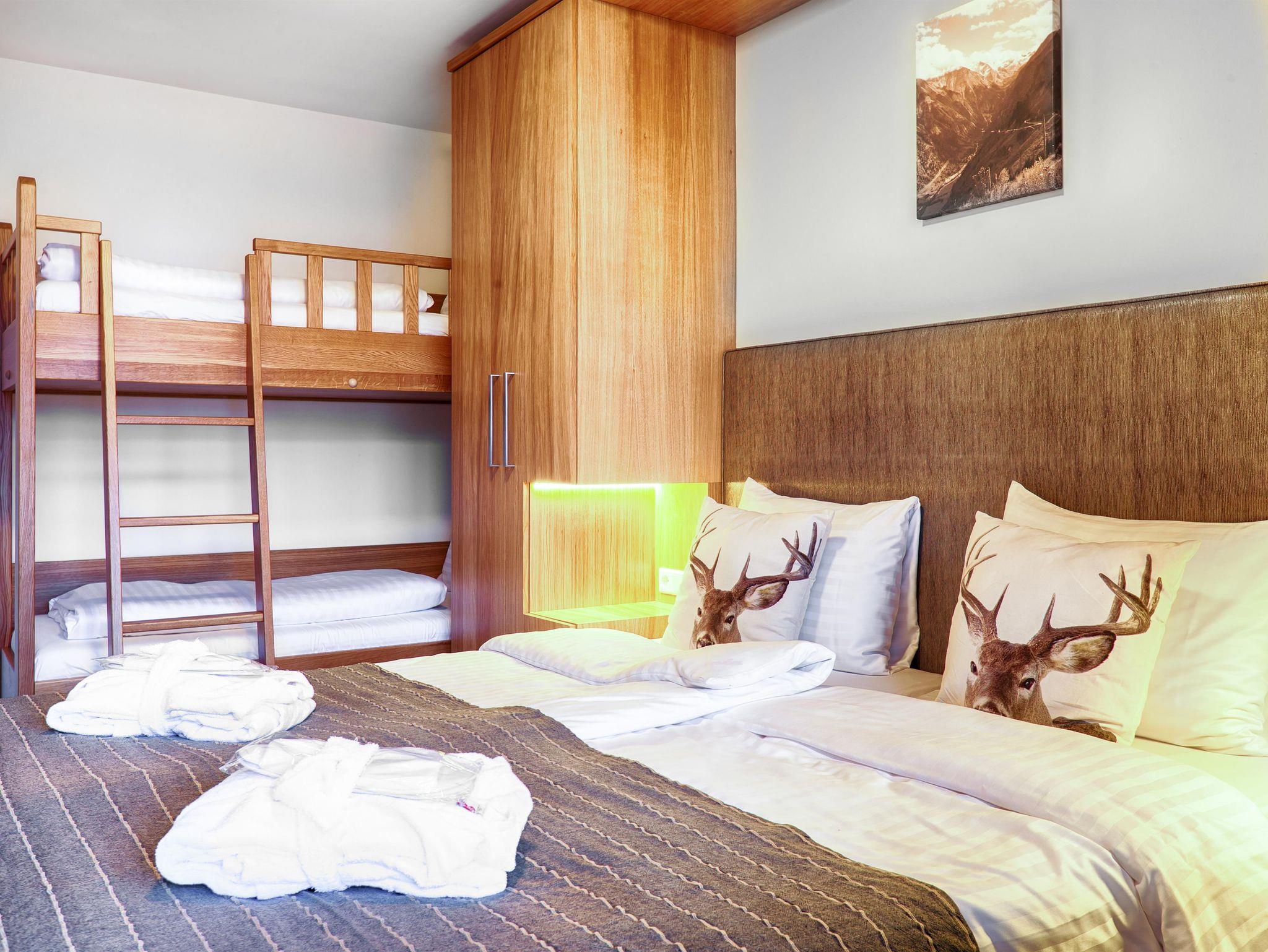 Das geräumige TOP B2 liegt im Erdgeschoss des Avenida Mountain Resort. Es besteht aus zwei großen Schlafzimmern mit jeweils einem eigenen Badezimmer. Eines der Schlafzimmer ist mit einem Doppelbett sowie einem Etagenbett für zwei Personen und einem Badezimmer mit Dusche ausgestattet. Das andere Schlafzimmer beinhaltet ein Doppelbett und ein Badezimmer mit Badewanne und separater Dusche. Das Wohnzimmer ist großzügig konzipiert mit einem gemütlichen großen Esstisch und einer offenen Design-Küche. Zur großen Terrasse gelangt man direkt vom Wohnzimmer aus.