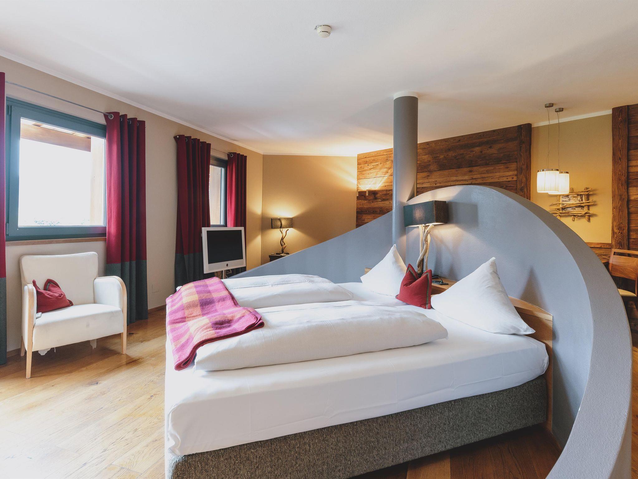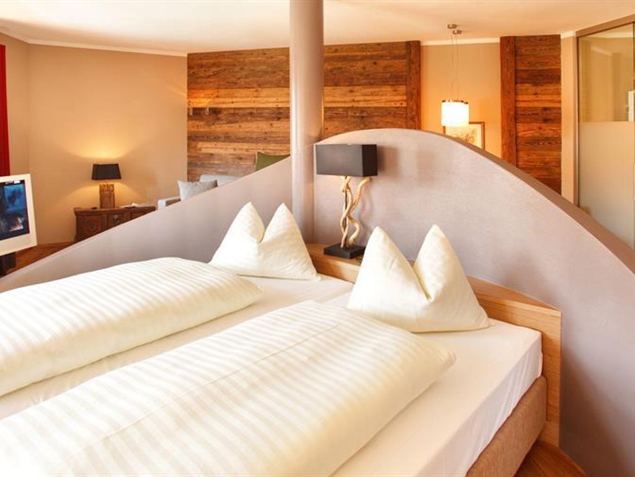 Vom Bett aus schon auf den Bergen. Wie das geht? Ganz einfach in unseren „kleinen“ aber feinen Suiten mit extra großem Doppelbett erwartet Sie ein atemberaubender Blick auf die Berge. Sie verbringen Ihren Urlaub auf 55qm reiner Behaglichkeit.