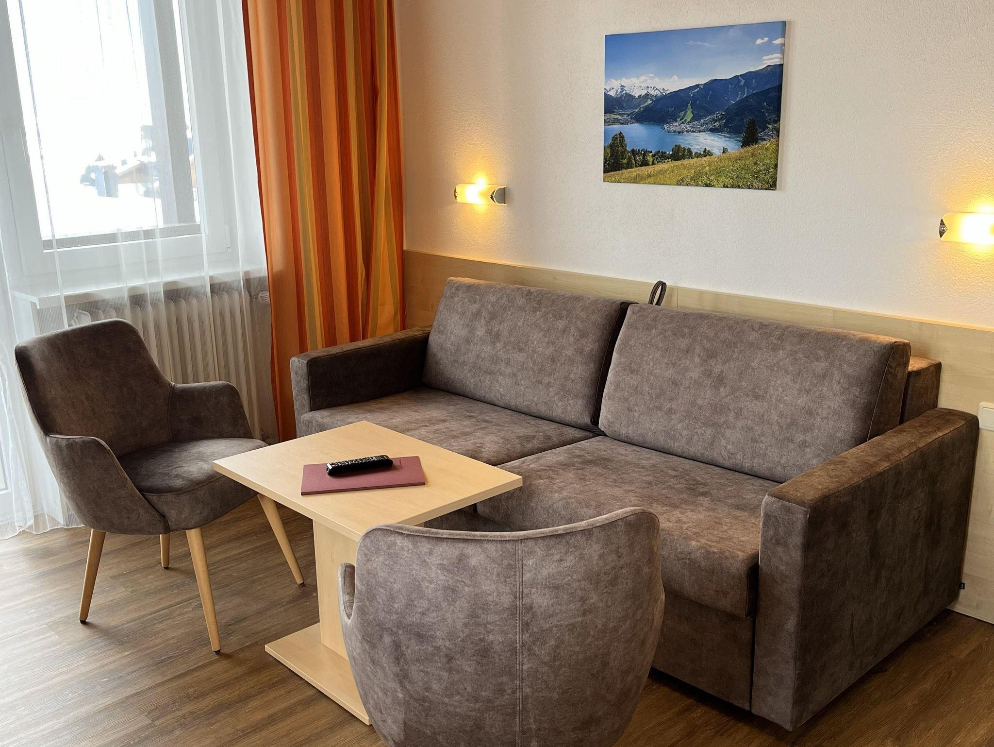 Unser charmantes Dachgeschoss-Appartement für 2 bis 4 Personen überzeugt mit gemütlichem Wohnkomfort. Es verfügt über eine voll ausgestattete Küche mit Essplatz, ein einladendes Wohnzimmer mit Schlafcouch sowie ein Schlafzimmer mit Doppelbett. Das moderne Badezimmer mit Doppelwaschbecken und Dusche sowie das separate WC sorgen für zusätzlichen Komfort. Auf dem Balkon genießen Sie entspannte Stunden mit herrlichem Ausblick.