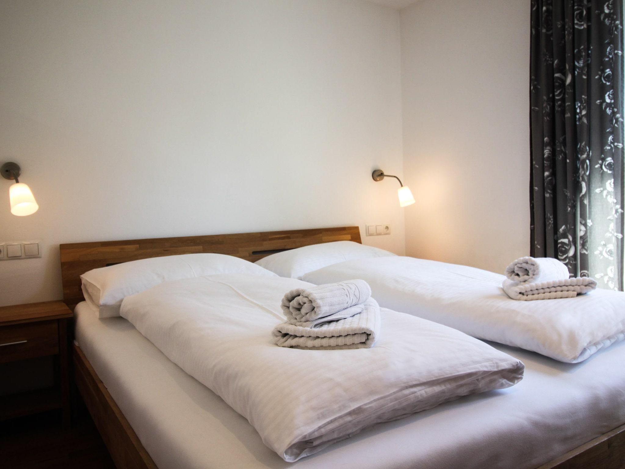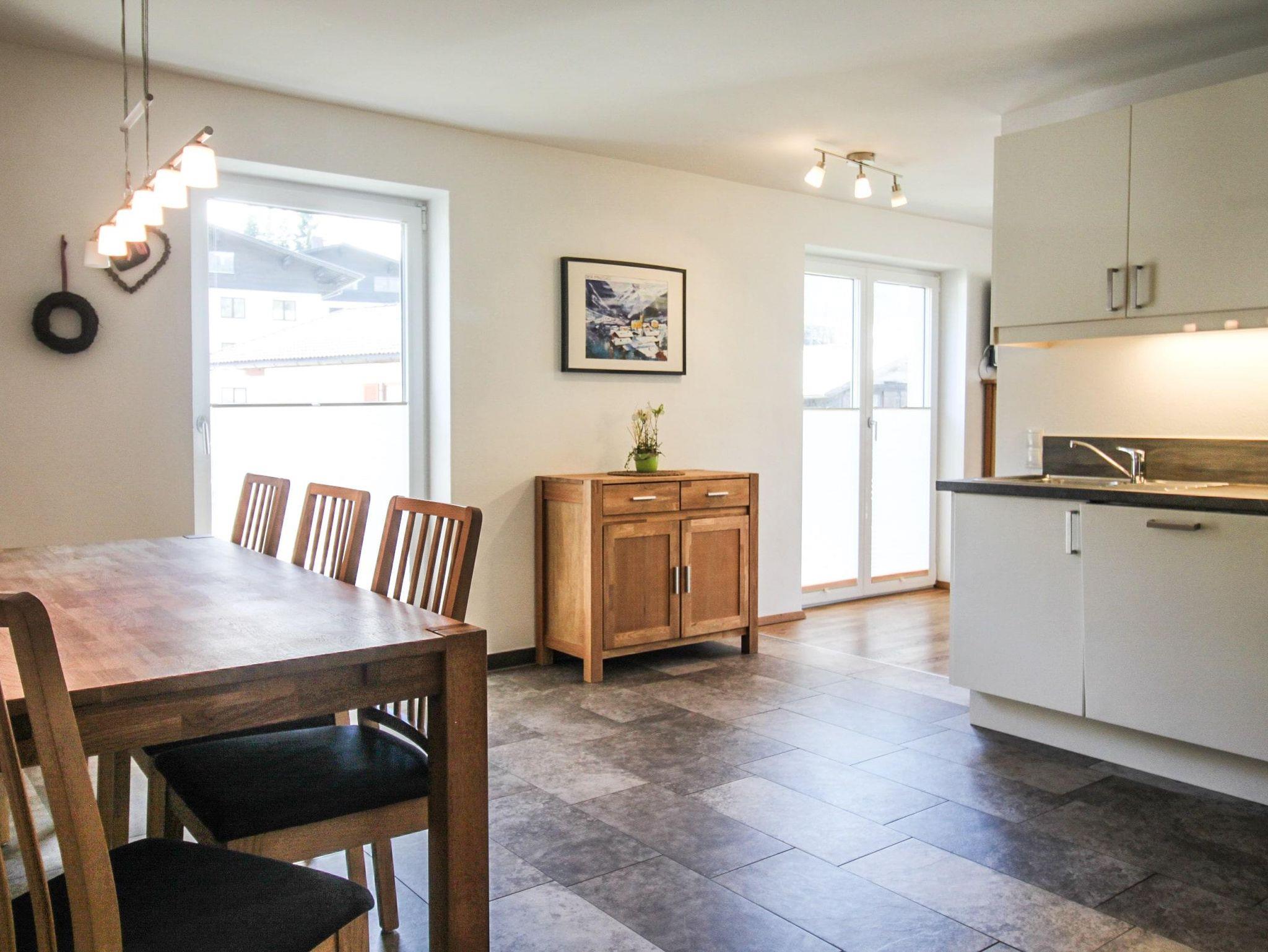 Komfort-Ferienwohnungen im Zentrum von Kaprun. Ihnen steht drei Doppelbett-Zimmer, eine vollwertige Küche, zwei Bäder, eine IR-Kabine, ein gemeinsamer Wohnraum und eine großzügige überdachte Terrasse mit Blick auf das Kitzsteinhorn zur Verfügung.