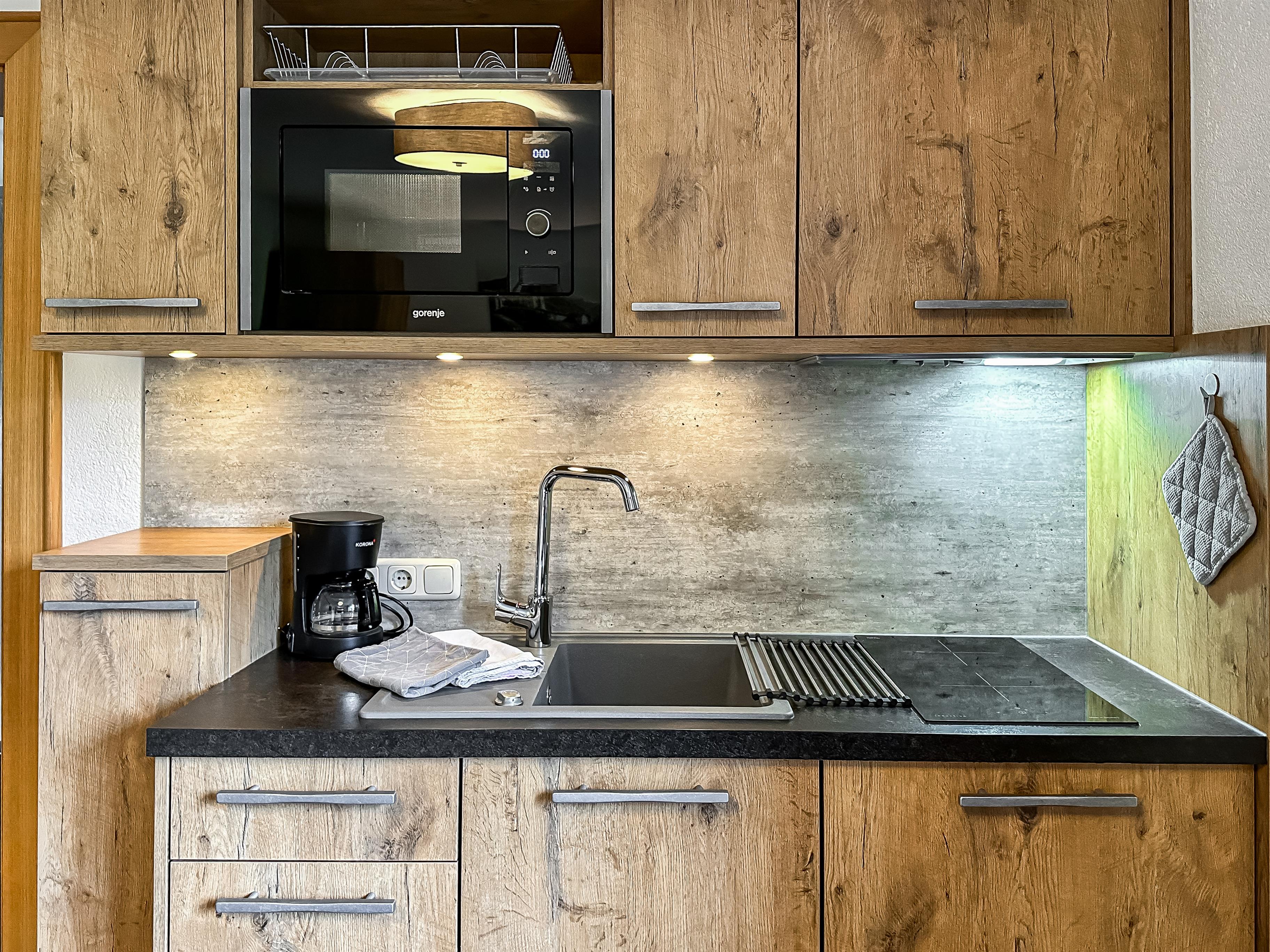 - Hand-, Bade- und Geschirrtücher, sowie Bettwäsche sind im Appartement vorhanden