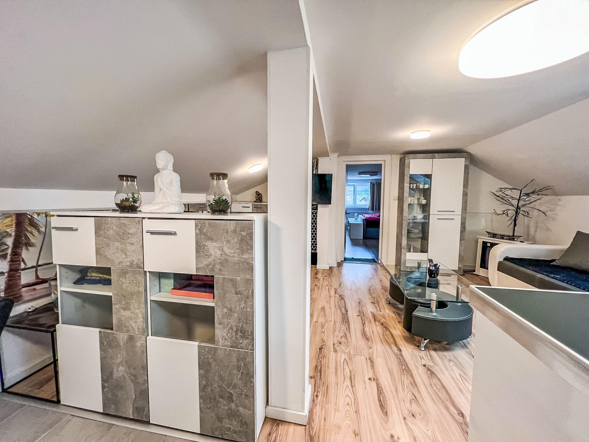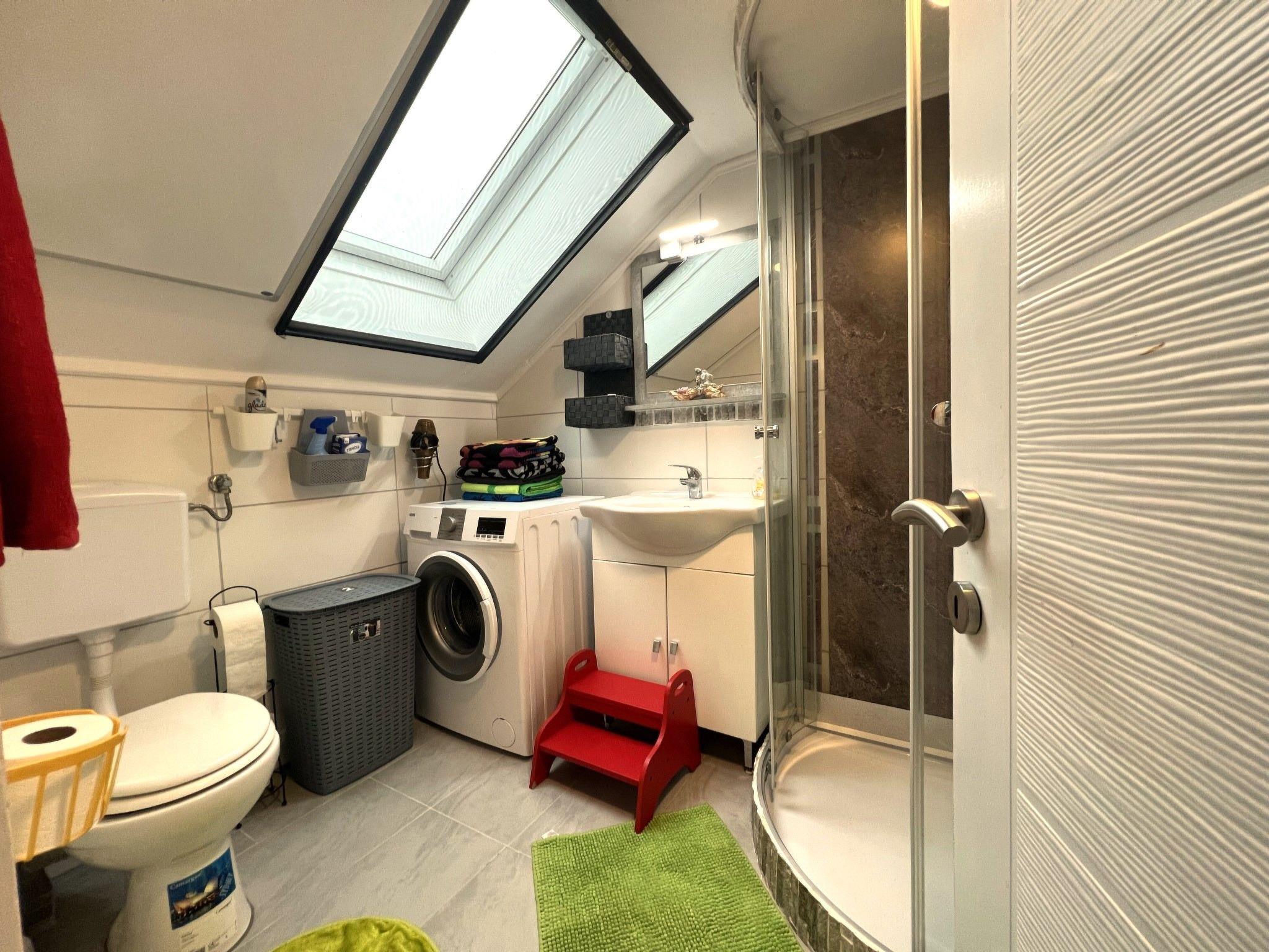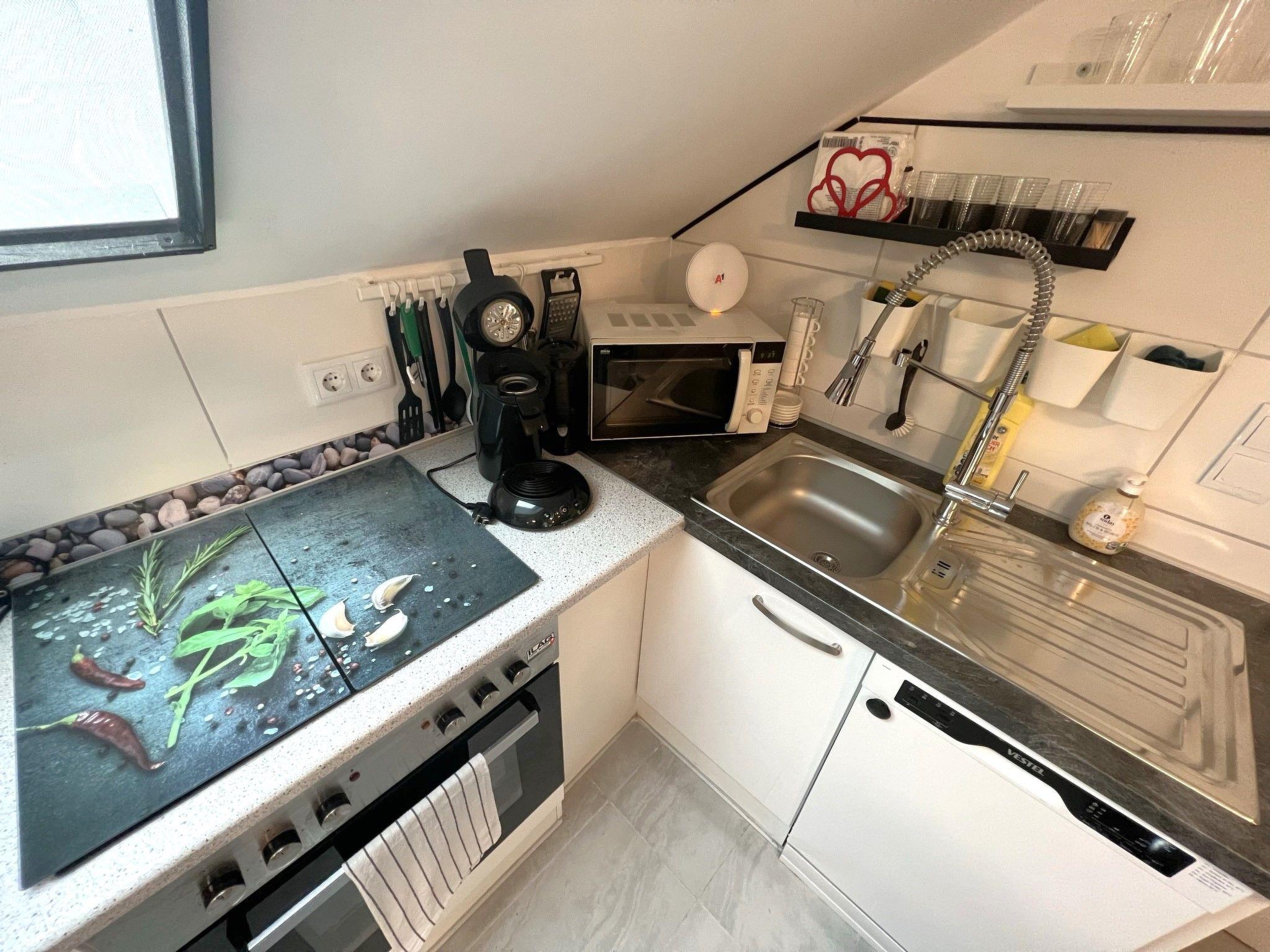 2-room apartment 70 m2 on 1st floor. Spacious and bright, partly with sloping ceilings, renovated in 2022, very comfortable and stylish furnishings: living/sleeping room with sloping ceilings with rooflight with 2 double sofabeds, TV and international TV channels (flat screen). 1 double bedroom with Dressing room. Open kitchen (4 hot plates, oven, dishwasher, kettle, microwave, electric coffee machine) with dining table and bar. Shower/WC. Electric heating. Parquet floors. Very beautiful view of the mountains. Facilities: washing machine, hair dryer. Internet (WiFi, free). Please note: non-smokers only. Maximum 2 pets/ dogs allowed.