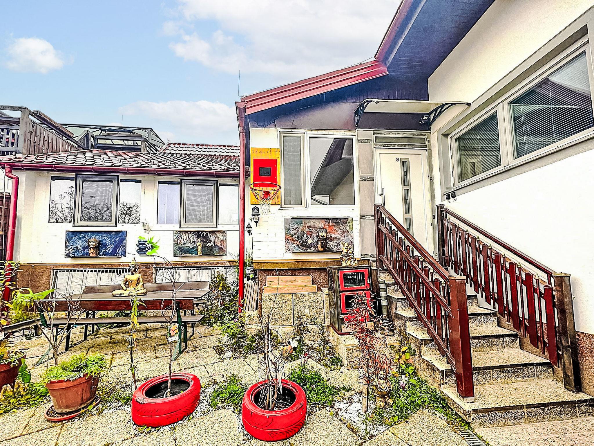 3-family house "Garden", 2 storeys, detached, renovated in 2022. 3 apartments in the property. On the outskirts, outside the resort, 5 km from the centre of Kirchschlag, in the district Oberpullendorf, in a quiet, sunny position, 100 m from the edge of the forest, 100 m from the stream, in the countryside. For shared use: property (fenced), beautiful garden to relax, pond. Arbour, terrace, garden furniture, barbecue. In the house: central heating system. Public parking on the road. Supermarket 100 m, shopping centre 14 km, bakery 100 m, 5 minute walk to the centre, bus stop 200 m, outdoor swimming pool 5 km, thermal baths "Sonnentherme Lutzmannsburg" 30 km, bathing lake "Naturbadesee St. Martin" 12 km. Walking paths from the house 10 m, children's playground 250 m. Nearby attractions: Burgruine Kirchschlag 4.5 km, Burg Lockenhaus 20 km, Therme Bad Tatzmannsdorf 27 km, Sonnentherme Lutzmannsburg 30 km, Blaufränkischland 28 km. Hiking paths: Bucklige Welt 1 km. Please note: car recommended. Loading and unloading of baggage is possible at the holiday house. Additional accommodations can be booked. Property ref. AT7372.100.2 is situated on the same property.