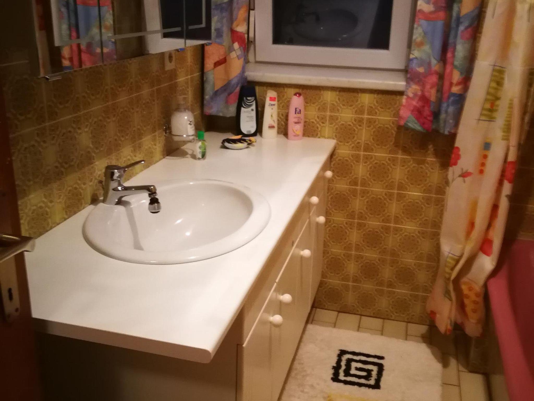 - Badezimmer (Waschtisch, Badewanne mit Dusche, Badeschrank, Bade- und Handtücher, Haartrockner, Pflegeprodukte, Desinfektionsmittel)