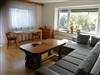 - Wohnzimmer mit Panoramafenster, Schlafsofa für 2 Personen und Sat - TV, Zugang zum Panoramabalkon