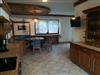 Riesiger Wohn-/Ess-/Aufenthalts-Bereich (35 qm) als Gemeinschaftsraum mit kompletter Küchen-Ausstattung und gemütlicher runder Essecke (10 Personen) und Kachelofen auf einer separaten Ebene mit Terrassenausgang, großer Sat-TV