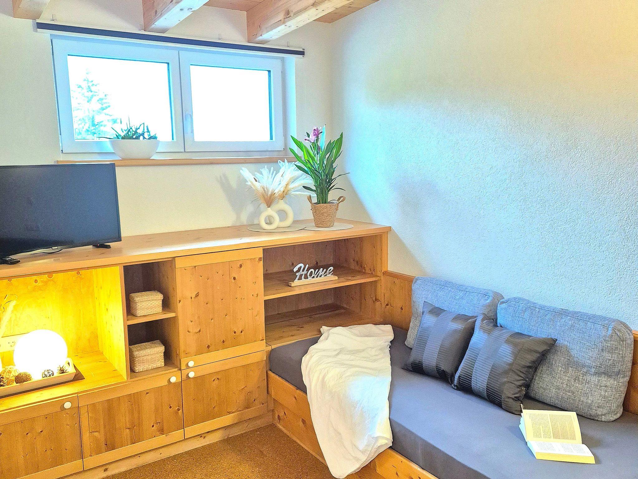 Unser Haus am sonnenverwöhnten Kaunerberg, verfügt über insgesamt 2 Ferienwohnungen im 1. Stock. Diese Wohnung (Apartment Amelie 1) bietet Platz für 4 Personen, ein 5tes Bett ist in der Wohnküche integriert.