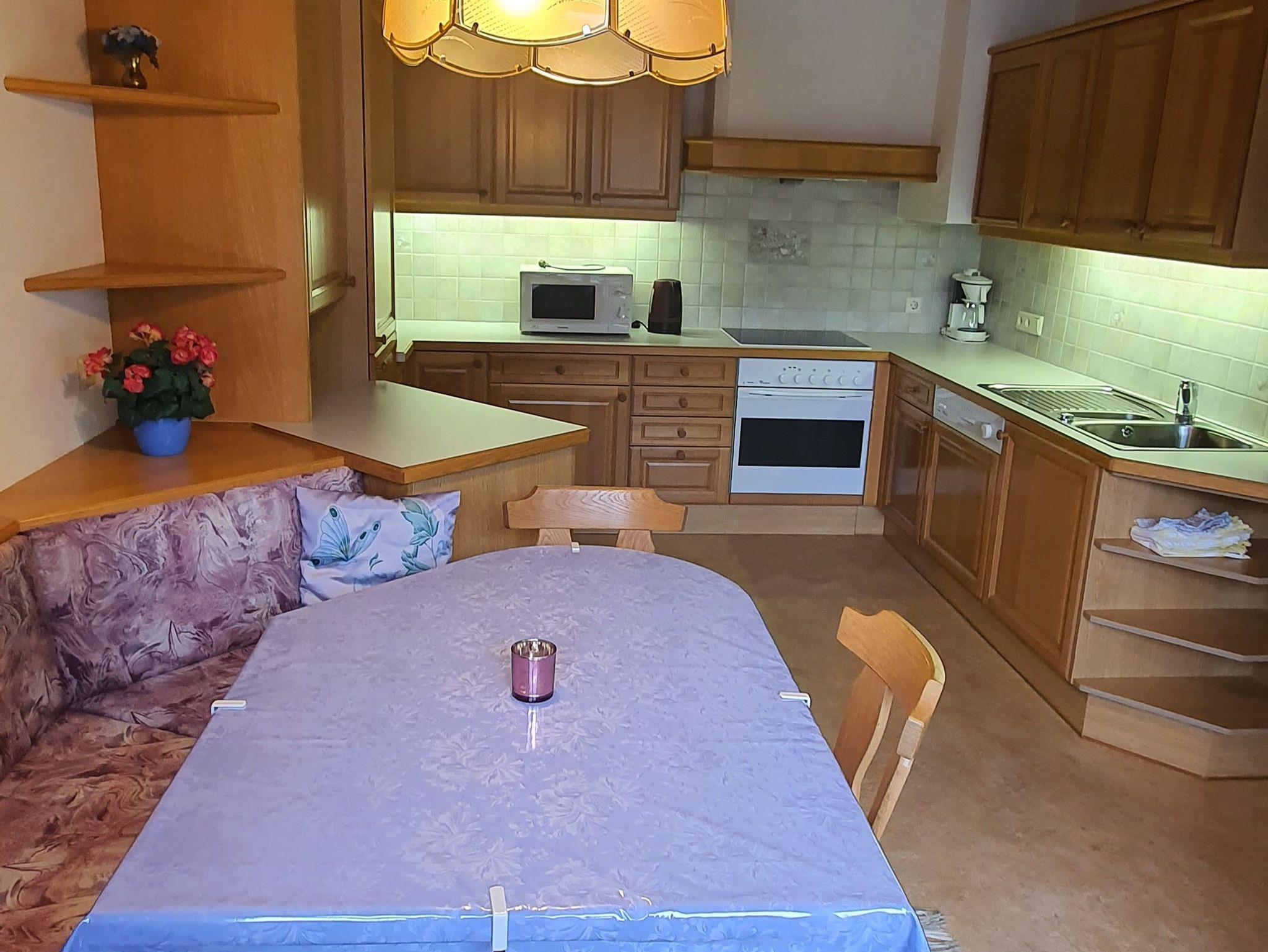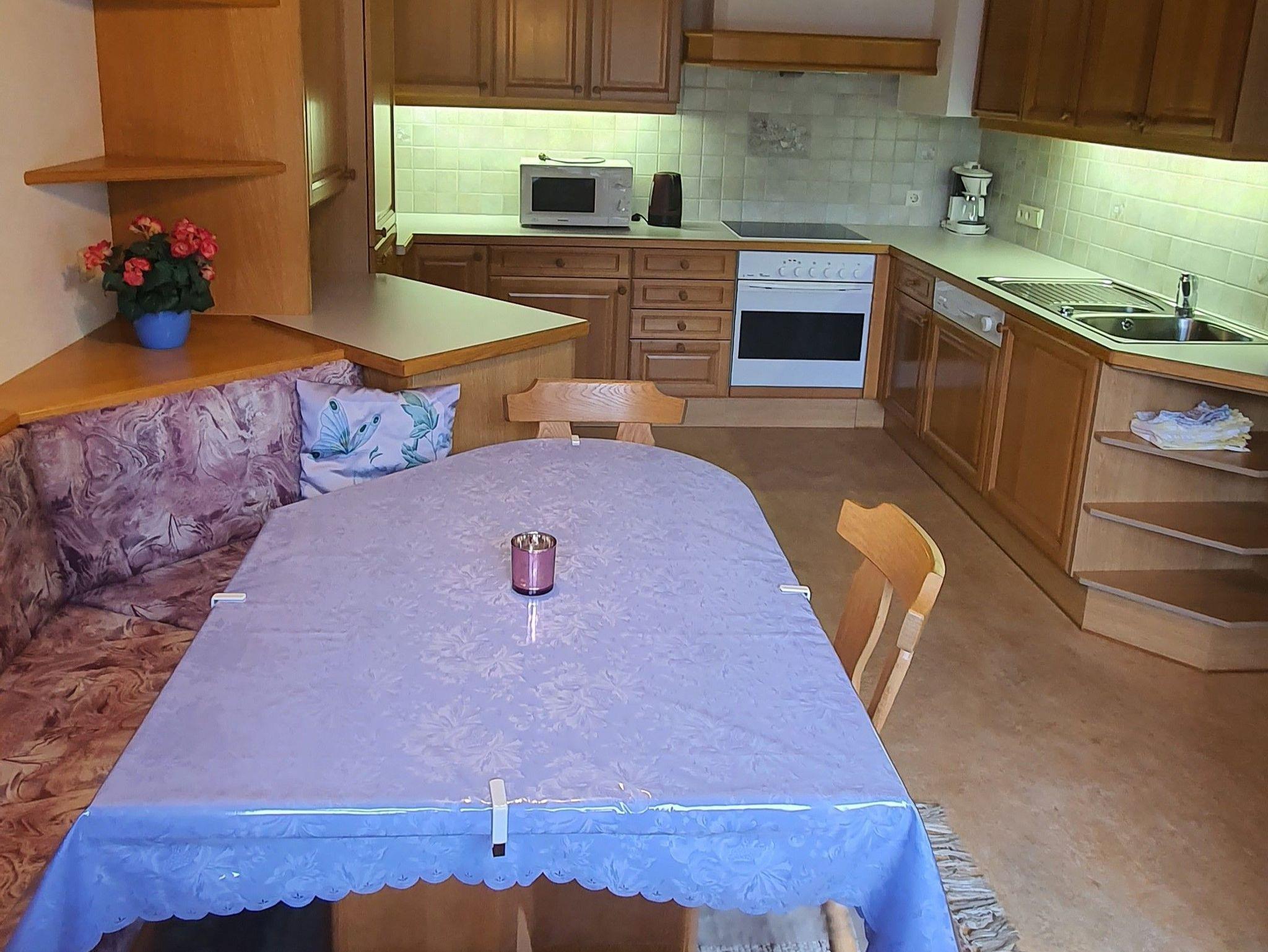 Wir bieten Ihnen eine komplett eingerichtete Ferienwohnung für 6 Personen, bestehend aus 3 Schlafzimmern, Wohnküche mit Geschirrspüler, Sat-TV und Balkon, 1 Badezimmer mit DU/WC und Waschmaschine, 1 WC getrennt sowie einem Vorraum.
