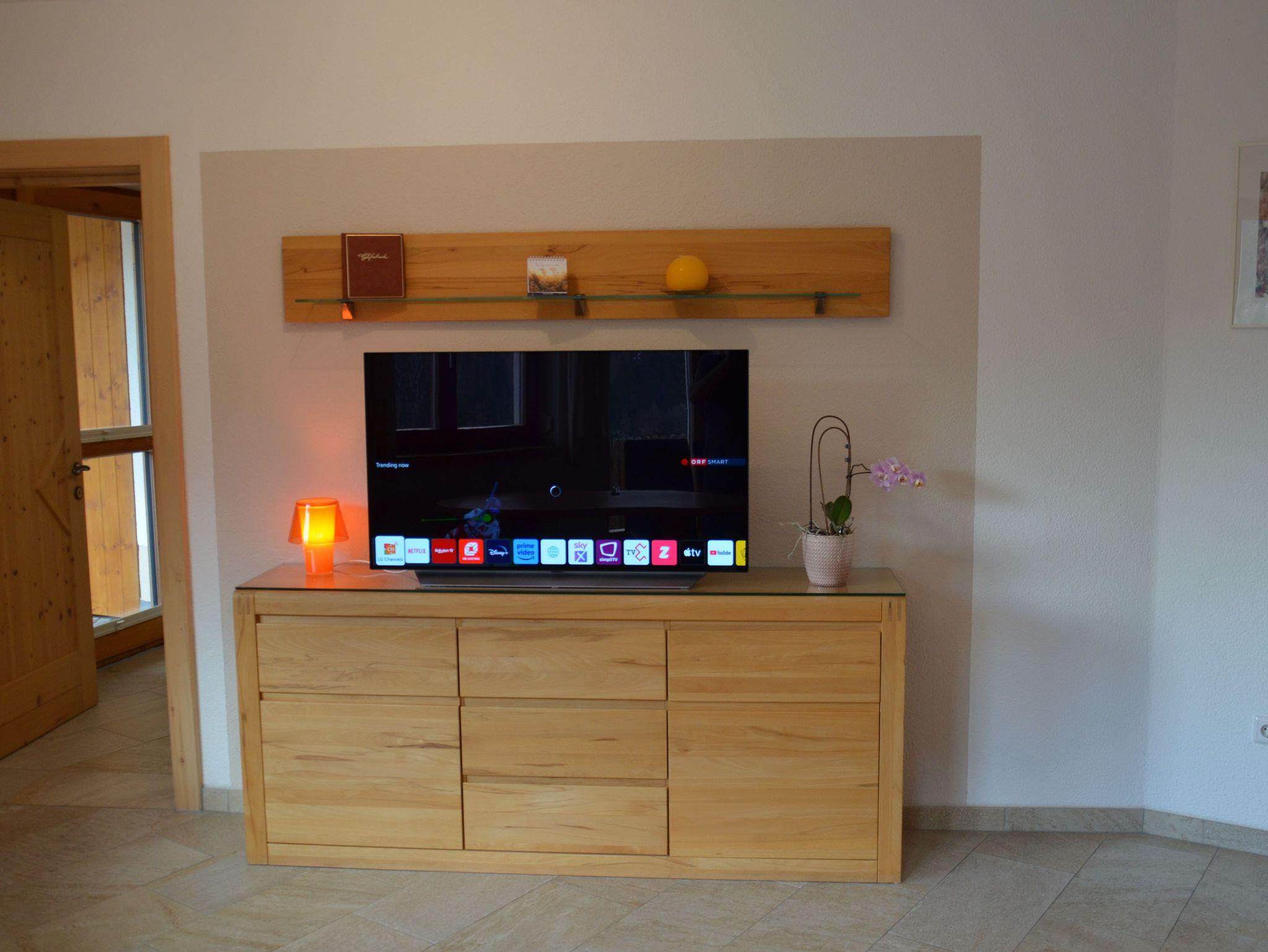 Wohnschlafzimmer mit ausziehbarer Doppelcouch, smart TV