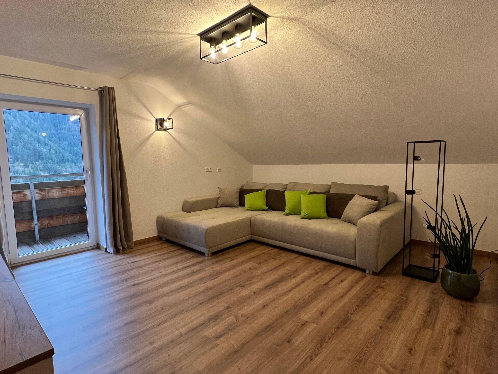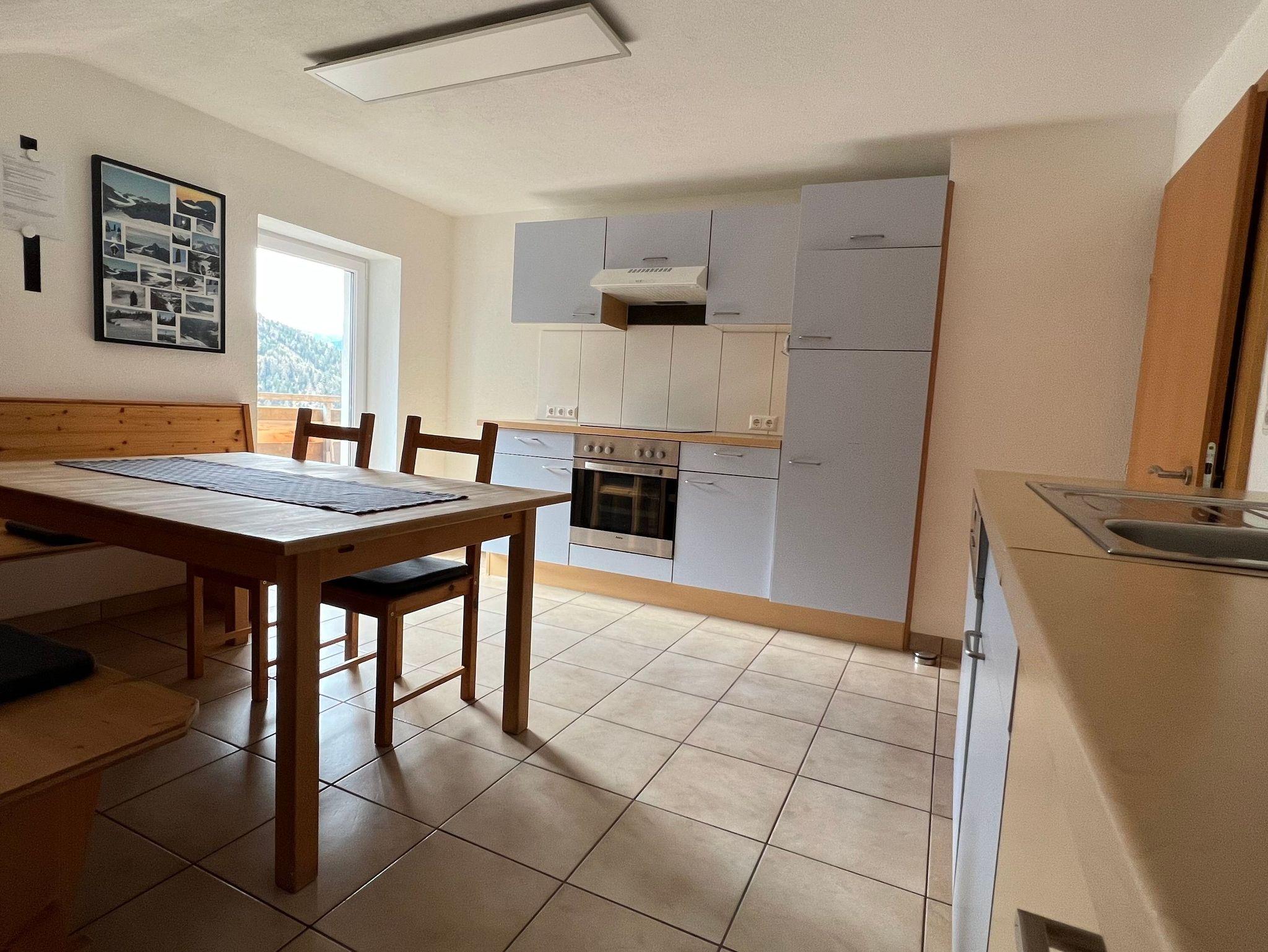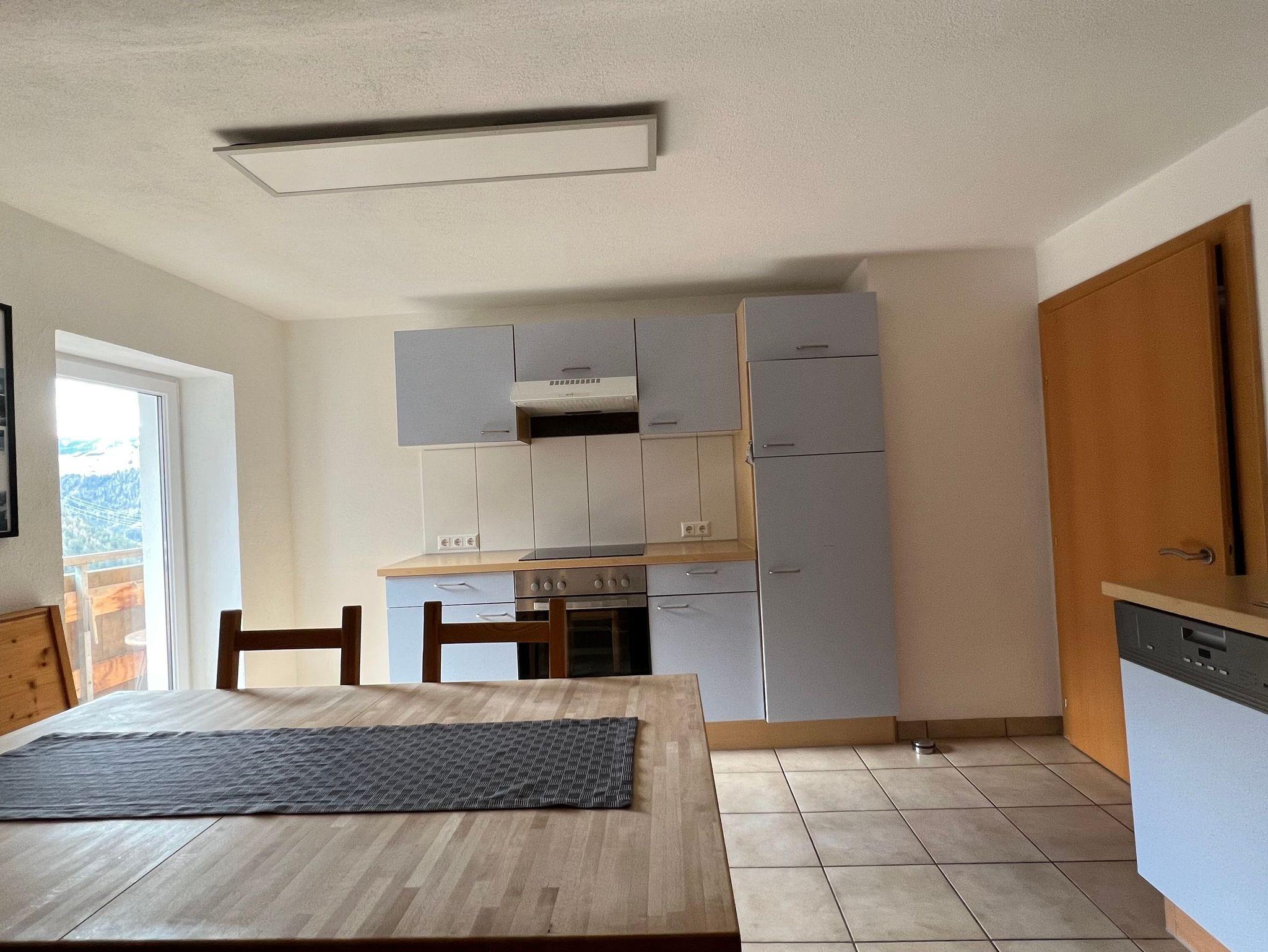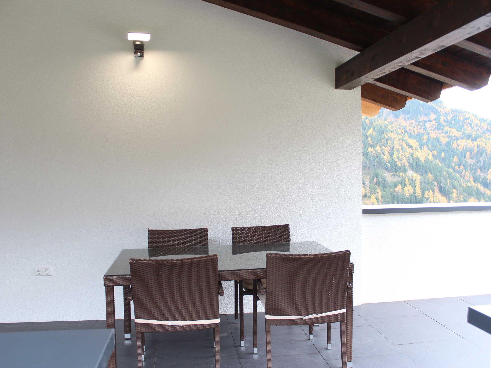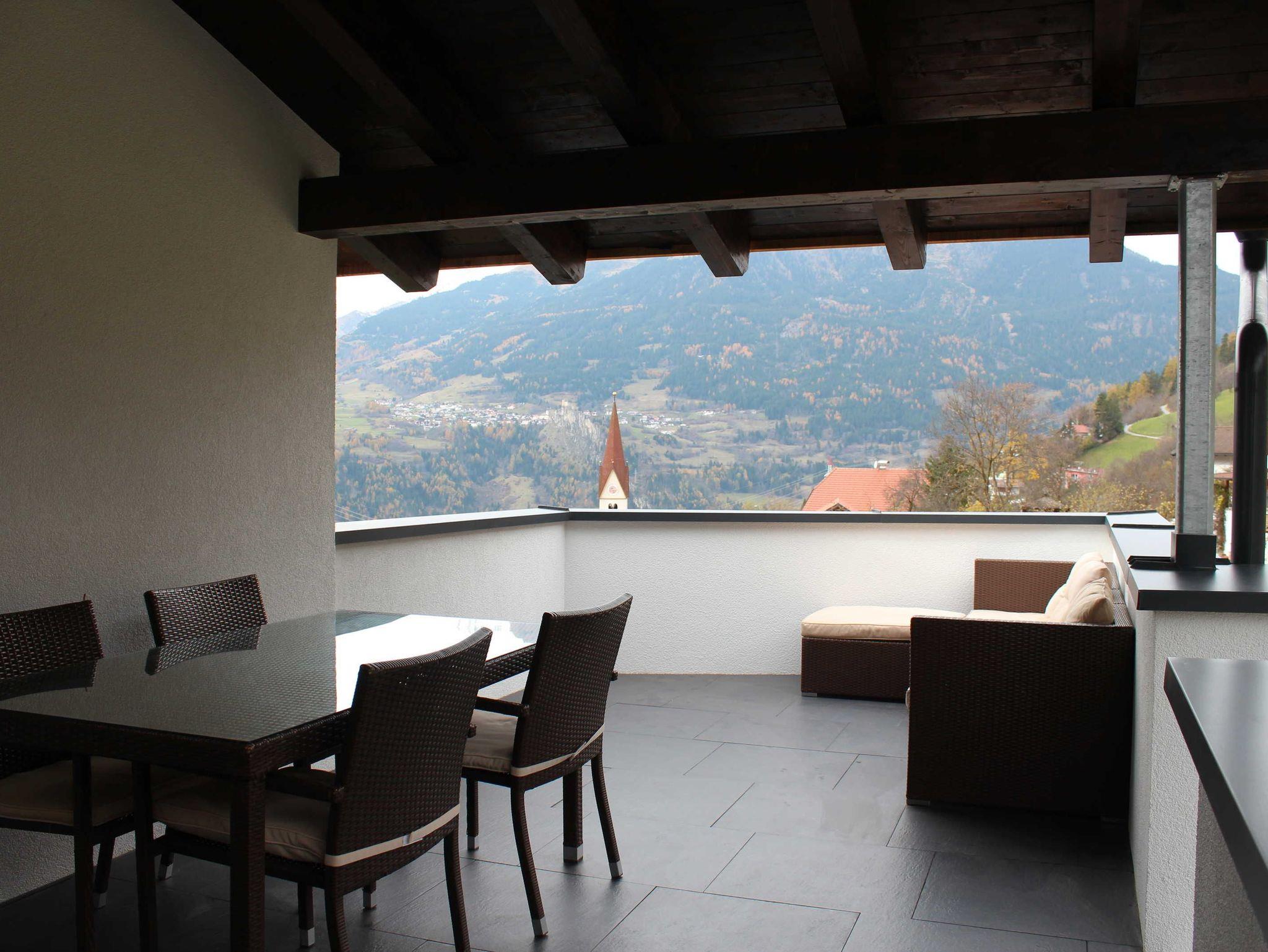 Die Wohnung besticht durch seine großen Räume und den südseitigen Sonnenbalkon mit kleinem Frühstückstisch, welcher Sommer wie Winter mit einer traumhaften Aussicht zum verweilen einlädt. Der Eingang zur Ferienwohnung führt über eine eigene Eisentreppe, über welche man auch direkt auf die große, eigens zur Ferienwohnung gehörende Terrasse kommt. Die Terrasse besteht aus einem Esstisch für 7 Personen welcher überdacht ist, sowie über einen Sitz- bzw. Liegebereich im nicht überdachten Bereich.