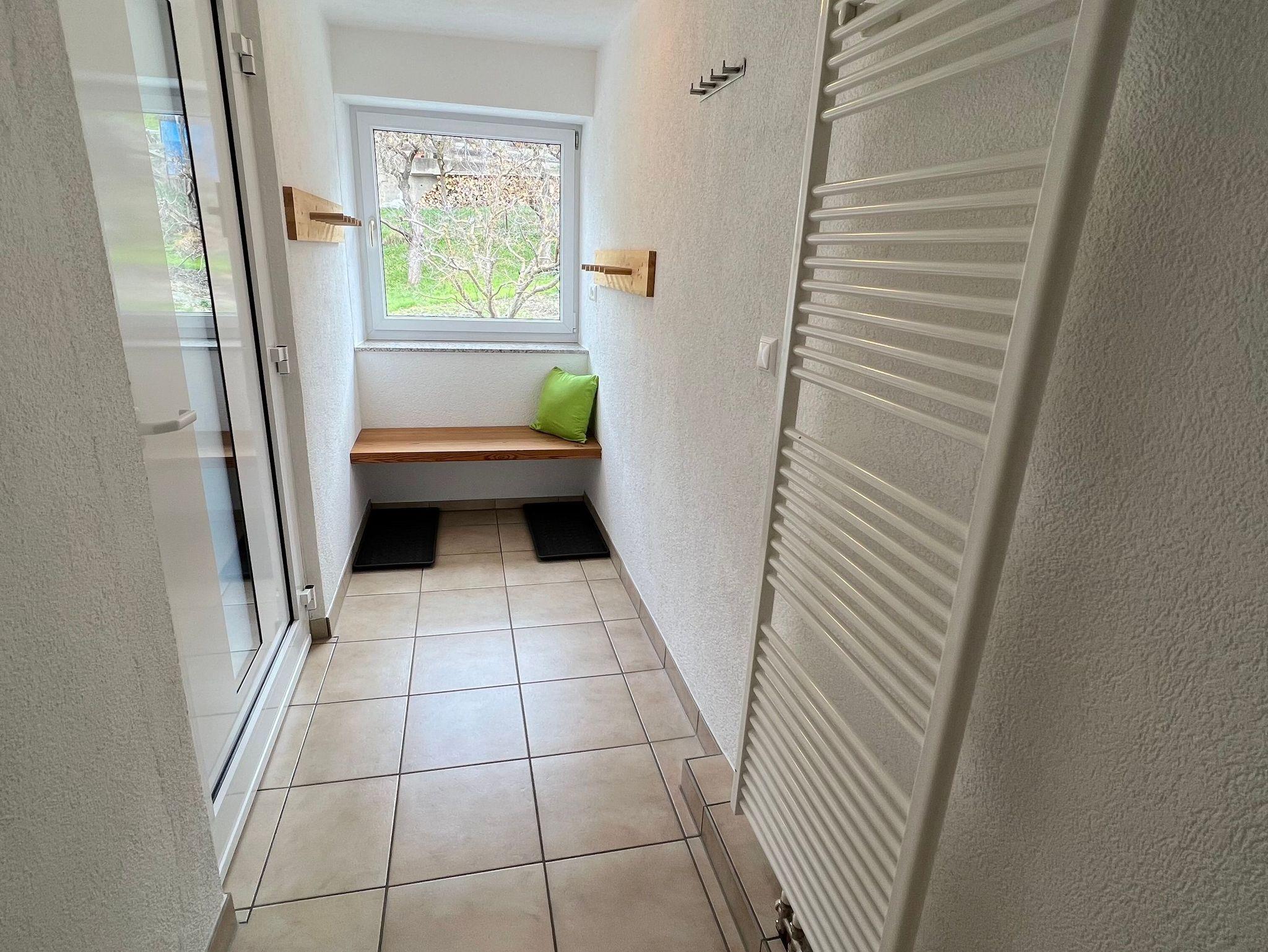 Der Eingang der Ferienwohnung führt über die Terrasse, die Fereinwohnung verfügt über kostenlosen Internetzugang via W-Lan.