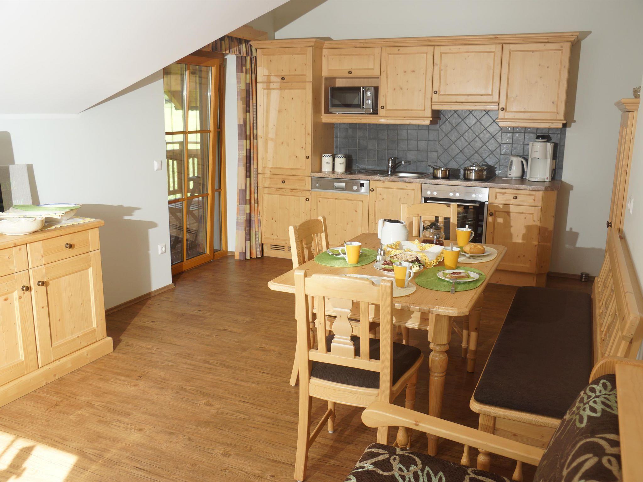 Voll ausgestattet mit Bettwäsche, Hand- und Geschirrtücher. Die Küche ist mit E-Herd/Backrohr, Geschirrspüler, Kühlschrank Mikrowelle, Kaffeemaschine, Wasserkocher und ausreichend Koch- und Essgeschirr, einer ausziehbaren Couch und Esstisch ausgestattet. Weiters gibt´s 2 Schlafzimmer, Dusche und WC sind getrennt und einen Vorraum mit großer Garderobe. Außerdem verfügt die Wohnung über Sat/Lan und TV. Der große Balkon bietet ausreichend Platz zum Verweilen bei einem genüßlichen Frühstück aber auch das Genießen der lauen Sommerabende bei einem guten Gläschen Wein.
