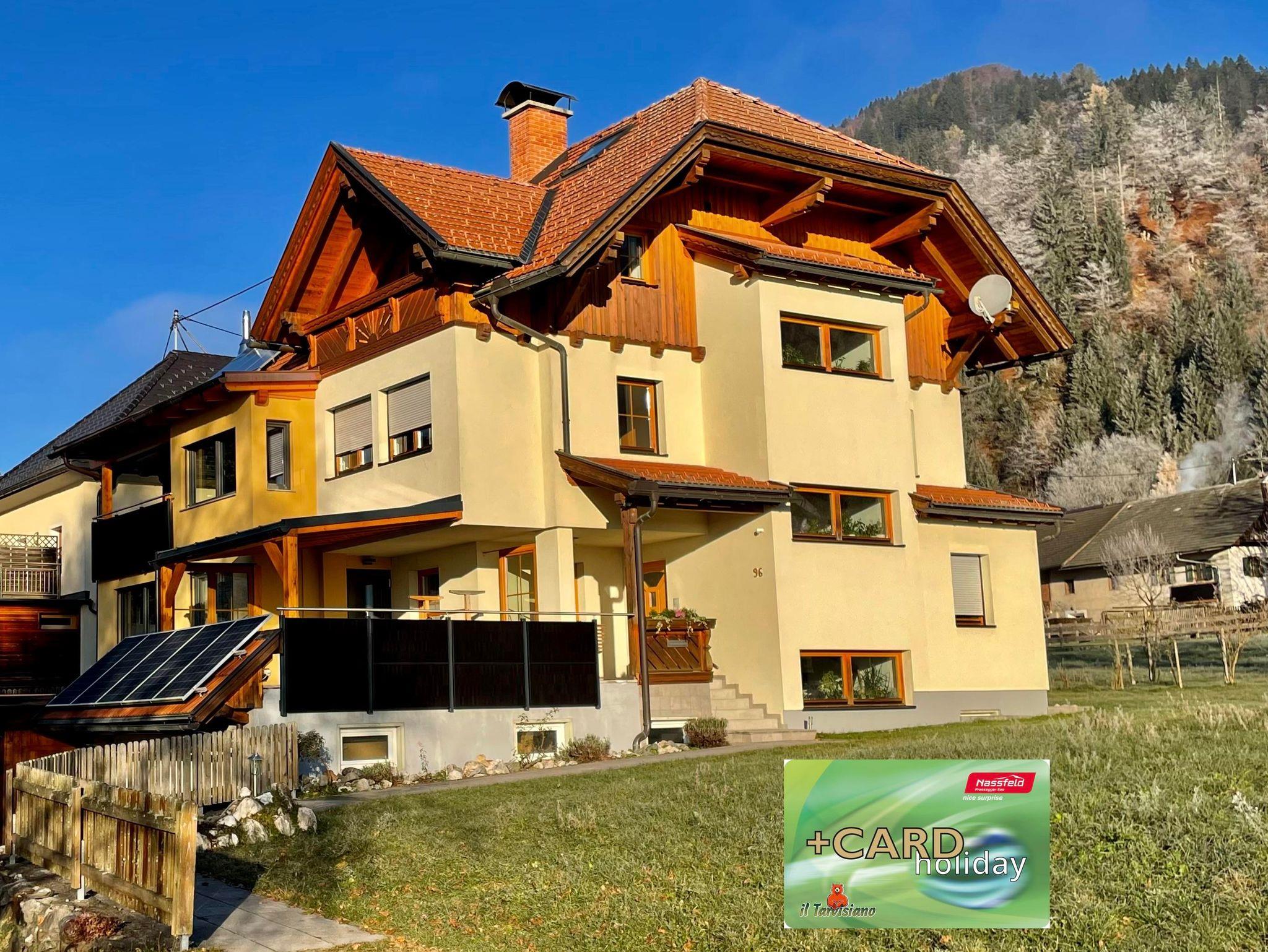 Unser klima- und umweltbewusstes Haus liegt im Ortszentrum und wird durch die lokale Nahwärme versorgt. Den überwiegenden Teil unseres Stroms produzieren wir mit unserer 9,8 kWp PV-Anlage selbst. Öffentliche Einrichtungen wie Bank, Post und Supermarkt sind in wenigen Gehminuten erreichbar. Das Skigebiet Nassfeld und die beiden Badeseen Pressegger See und Weißensee sind schnell zu erreichen. Die Skibushaltestelle ist ca. 100 m entfernt. Der Skibus ist in der Tageskarte inkludiert.