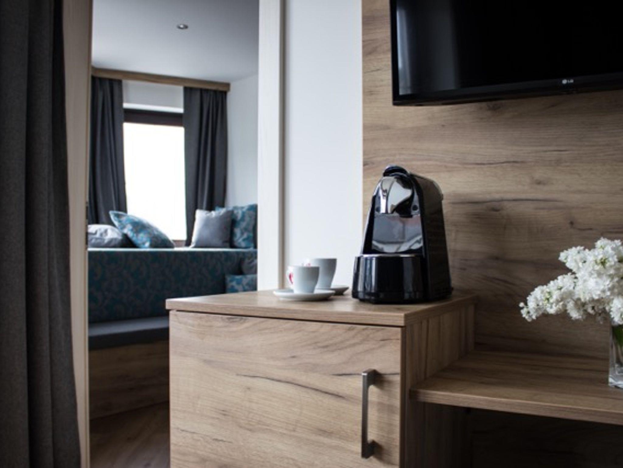 Dusche/WC,Fön, Klimaanlage, Regionale Minibar, Couch im Zusatzzimmer mit Küchenzeile, Sitzmöglichkeit, „Flussbett im Erker“ Sitzmöglichkeiten am Balkon, Espressomaschine