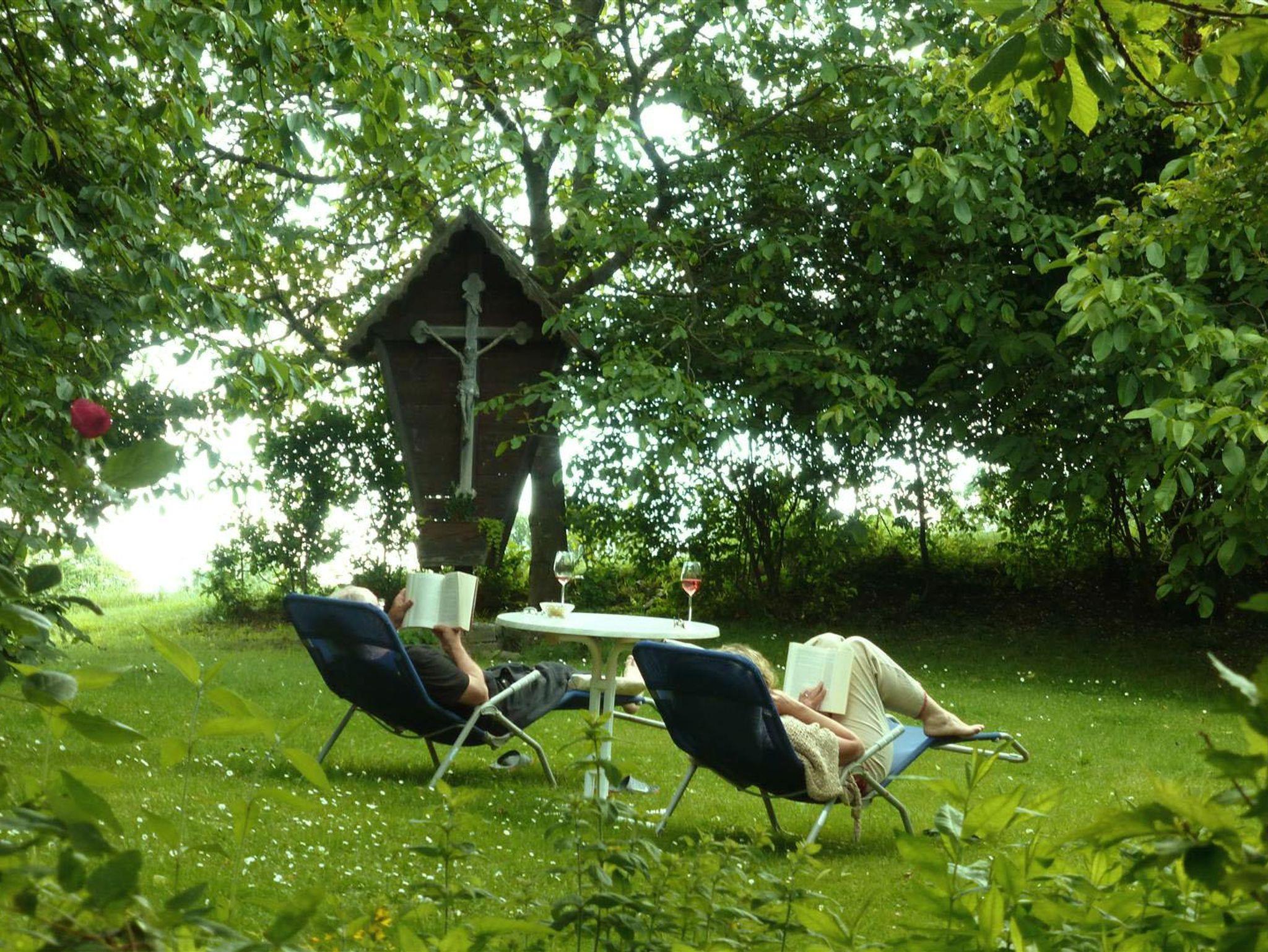 In unserem großen Naturgarten blühen unzählige Blumen wie Rosen und Sträucher, die dazu einladen, durch das grüne Paradies zu schlendern und die Seele baumeln zu lassen. Viele Sonnen- und Schattenplätze genießen Sie im Liegestuhl oder in der Hängematte.