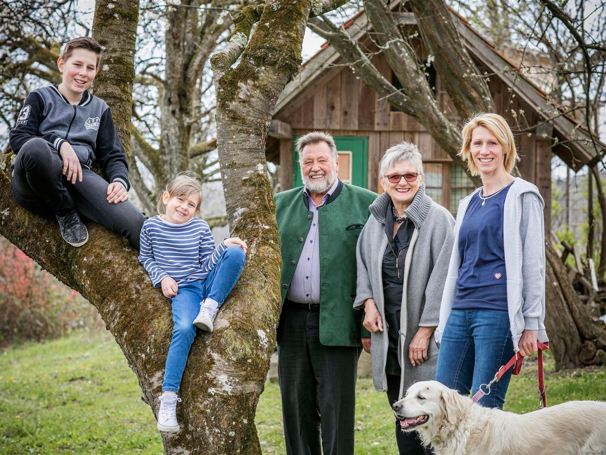 Der angrenzende kleine Wald bietet Entspannung pur beim Waldbaden. Am Waldesrand erfreuen sich Kinder am Trampolin, beim Sandspielen und Schaukeln.