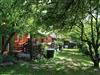 Der angrenzende kleine Wald bietet Entspannung pur beim Waldbaden. Am Waldesrand erfreuen sich Kinder am Trampolin, beim Sandspielen und Schaukeln.