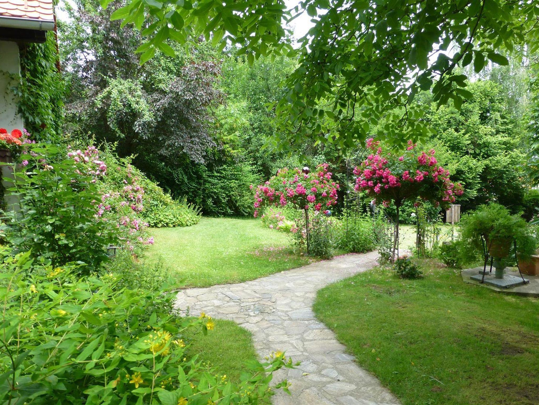 In unserem großen Naturgarten blühen unzählige Blumen wie Rosen und Sträucher, die dazu einladen, durch das grüne Paradies zu schlendern und die Seele baumeln zu lassen. Viele Sonnen- und Schattenplätze genießen Sie im Liegestuhl oder in der Hängematte.