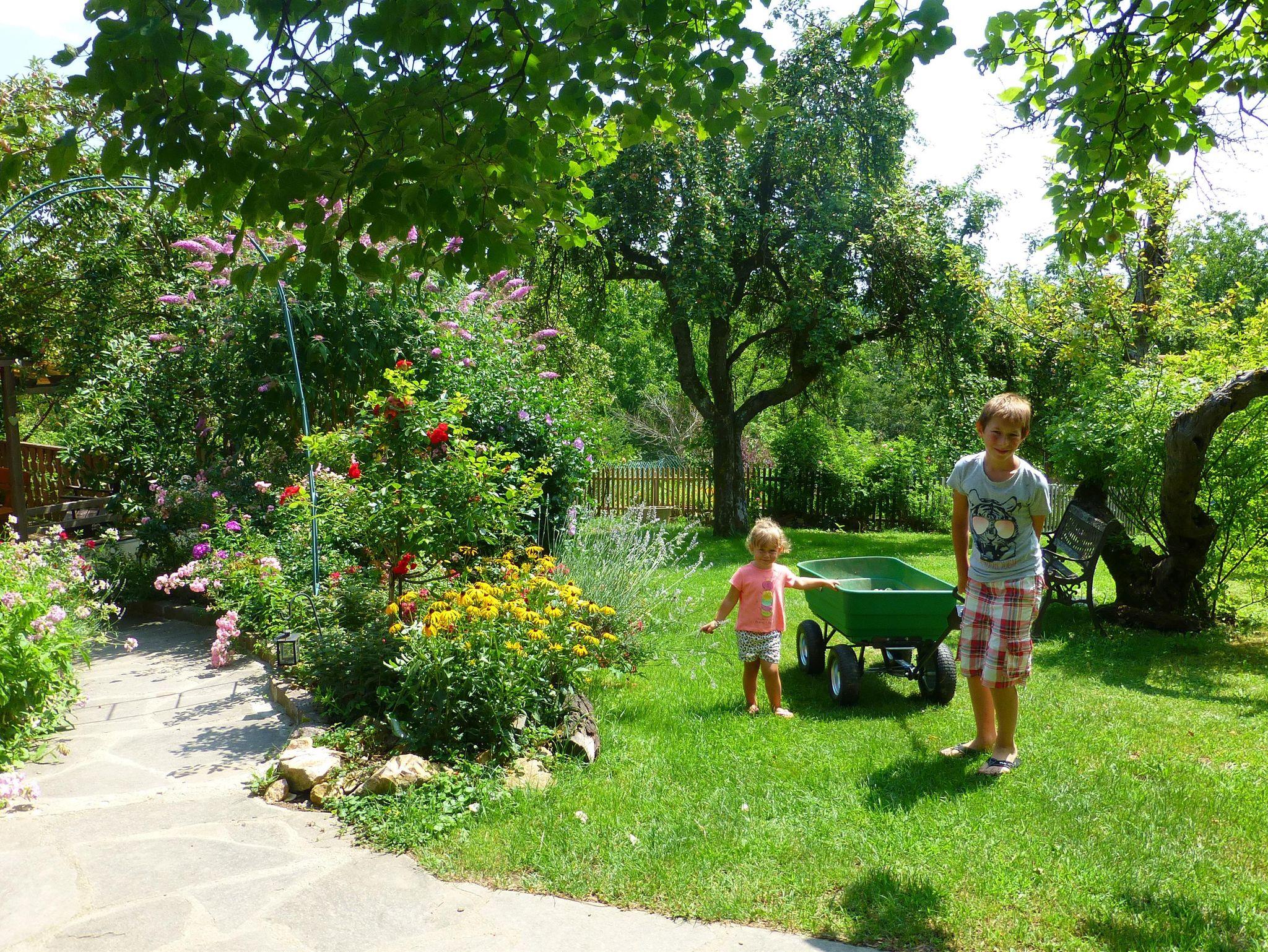 In unserem großen Naturgarten blühen unzählige Blumen wie Rosen und Sträucher, die dazu einladen, durch das grüne Paradies zu schlendern und die Seele baumeln zu lassen. Viele Sonnen- und Schattenplätze genießen Sie im Liegestuhl oder in der Hängematte.