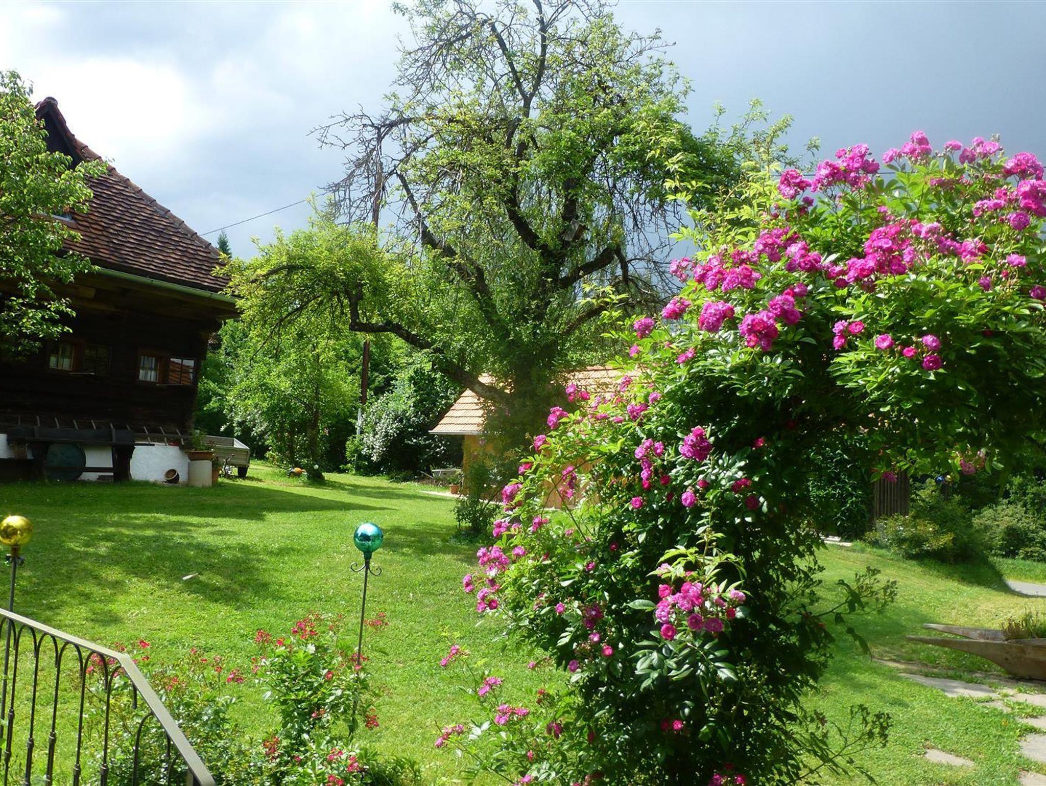 In unserem großen Naturgarten blühen unzählige Blumen wie Rosen und Sträucher, die dazu einladen, durch das grüne Paradies zu schlendern und die Seele baumeln zu lassen. Viele Sonnen- und Schattenplätze genießen Sie im Liegestuhl oder in der Hängematte.