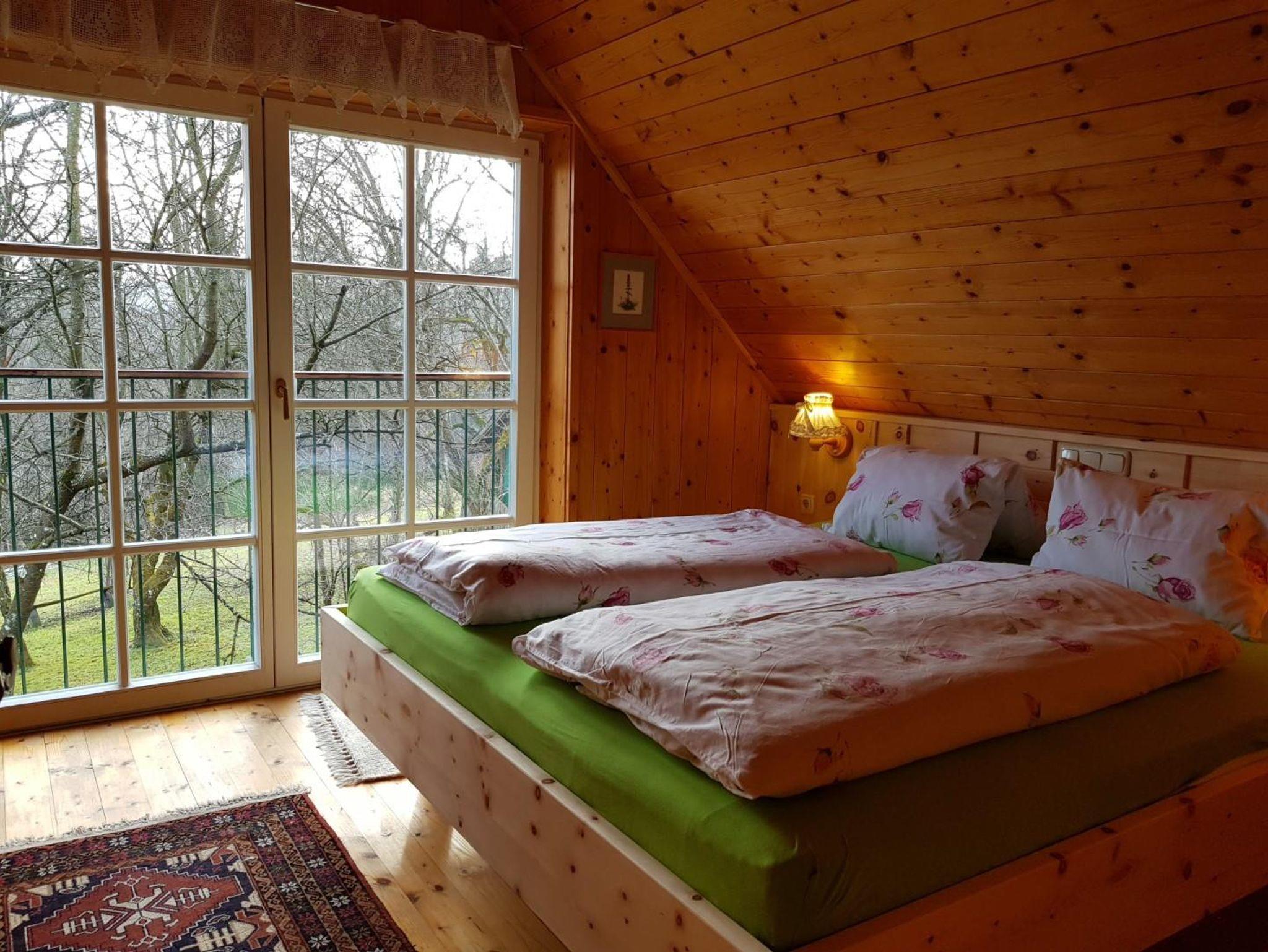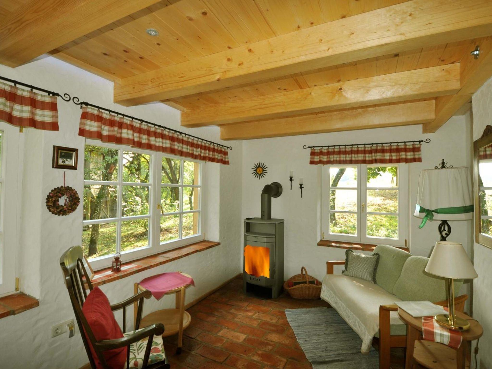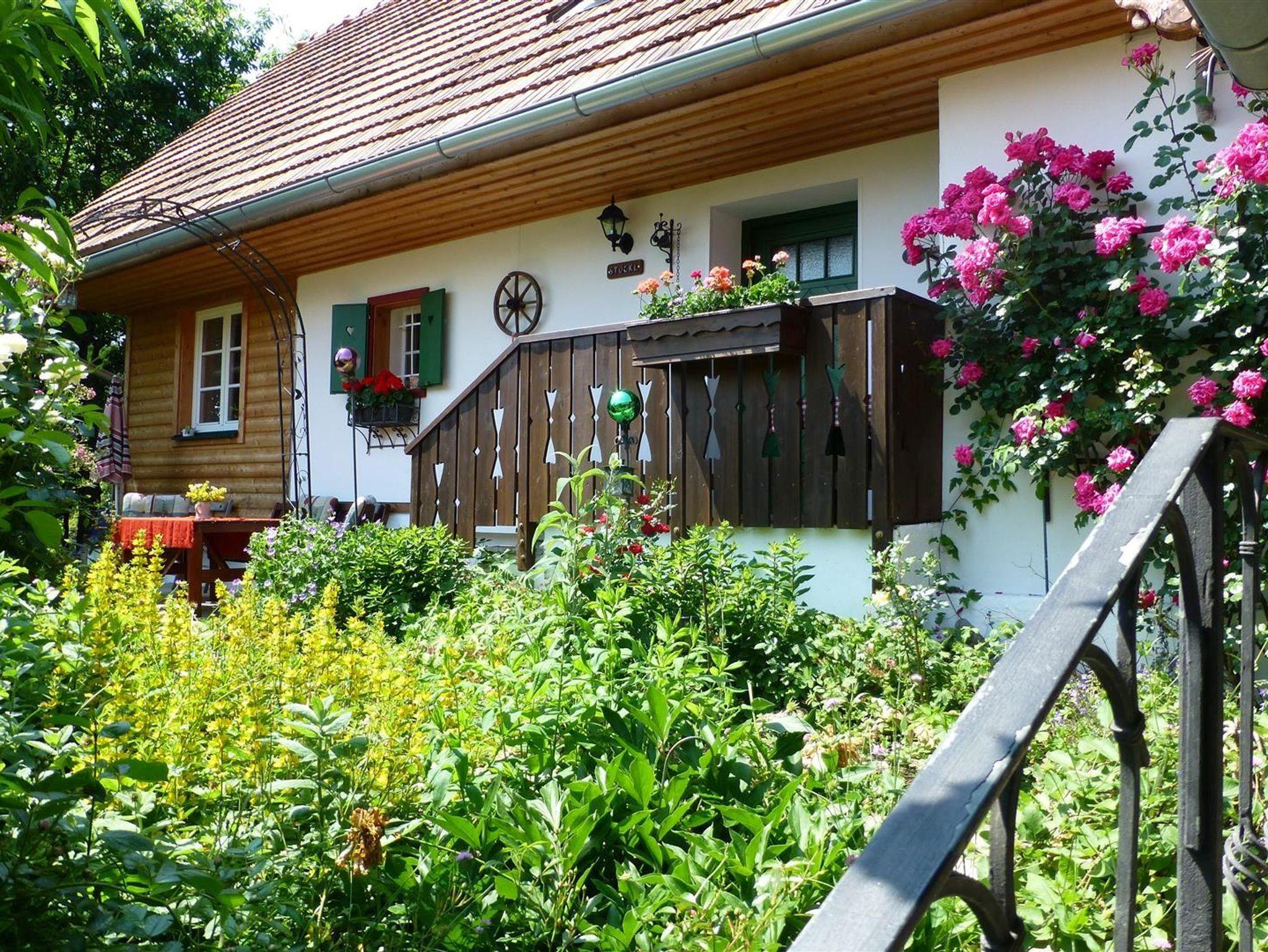 Das Romantikstöckl - ein Ferienhaus bis 3 Personen. Im EG Wohnküche mit anschließender lichtdurchfluteter Veranda und Kaminofen; Bad mit WC und Dusche, Vorraum. Großzügige ostseitige Terrasse, kleine westseitige Terrasse. Im OG Wohnschlafzimmer und anschließend ein Doppelbettzimmer mit wunderbaren Blick in den Obstgarten.