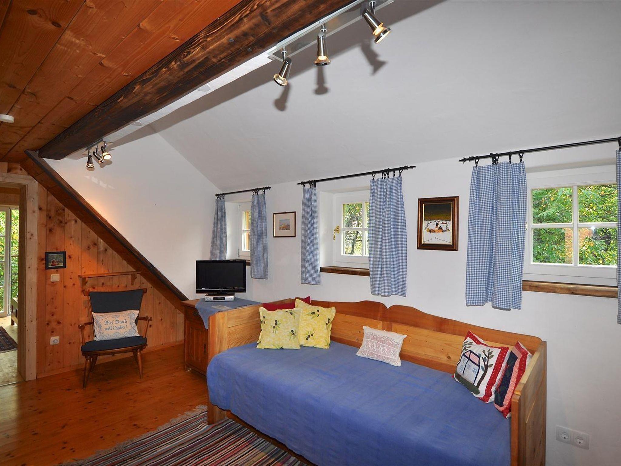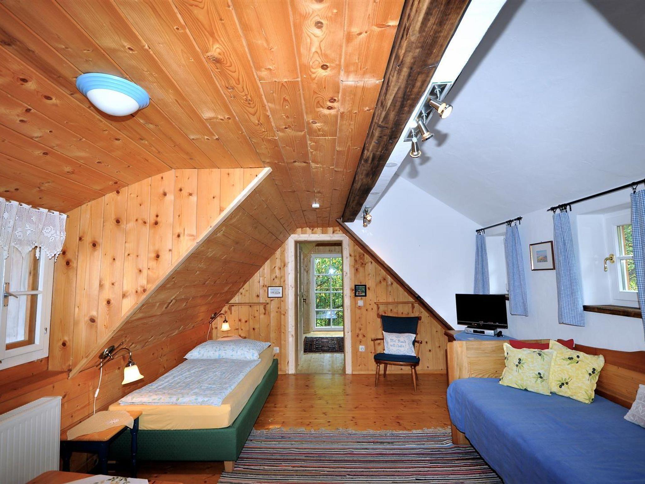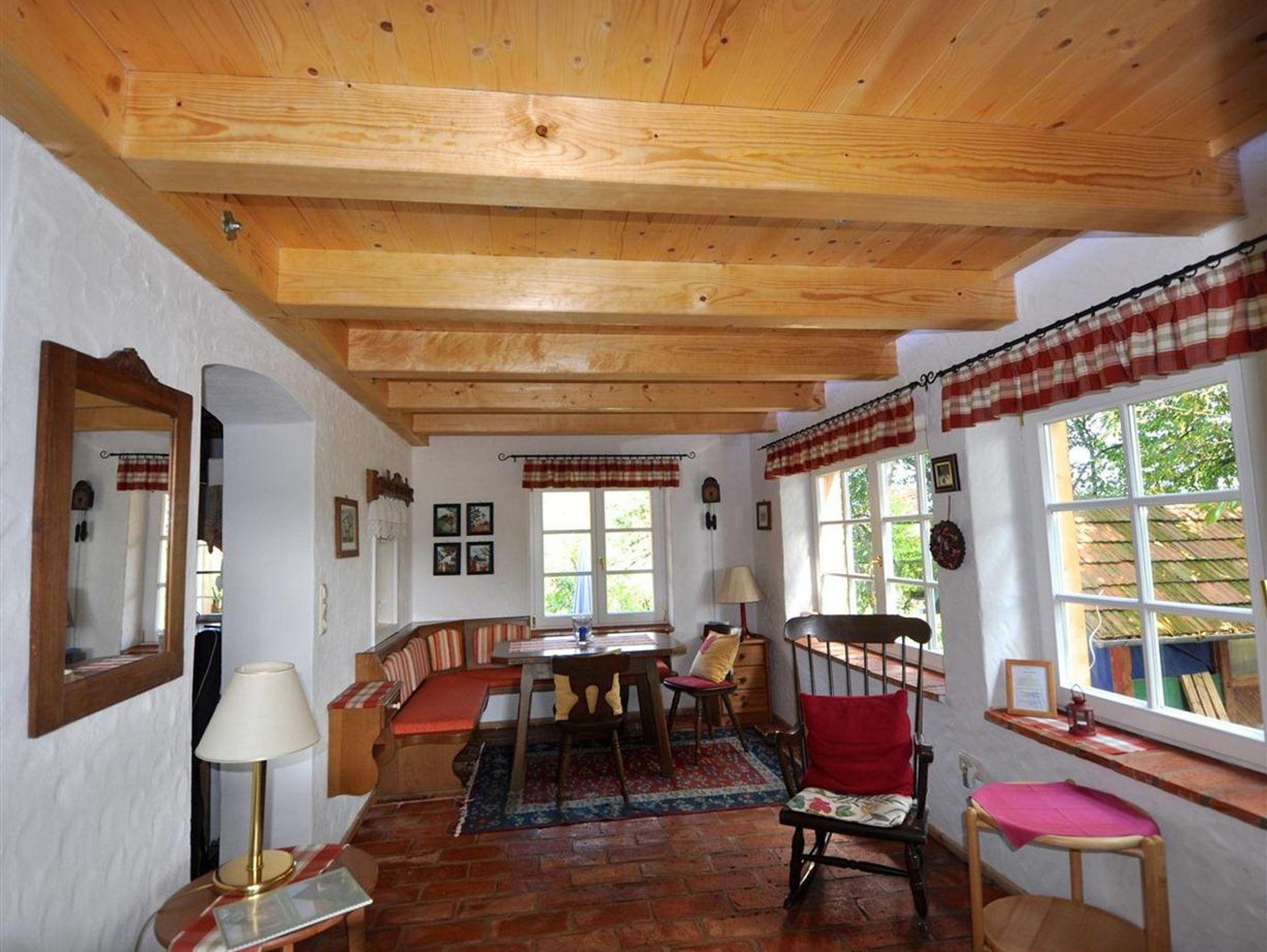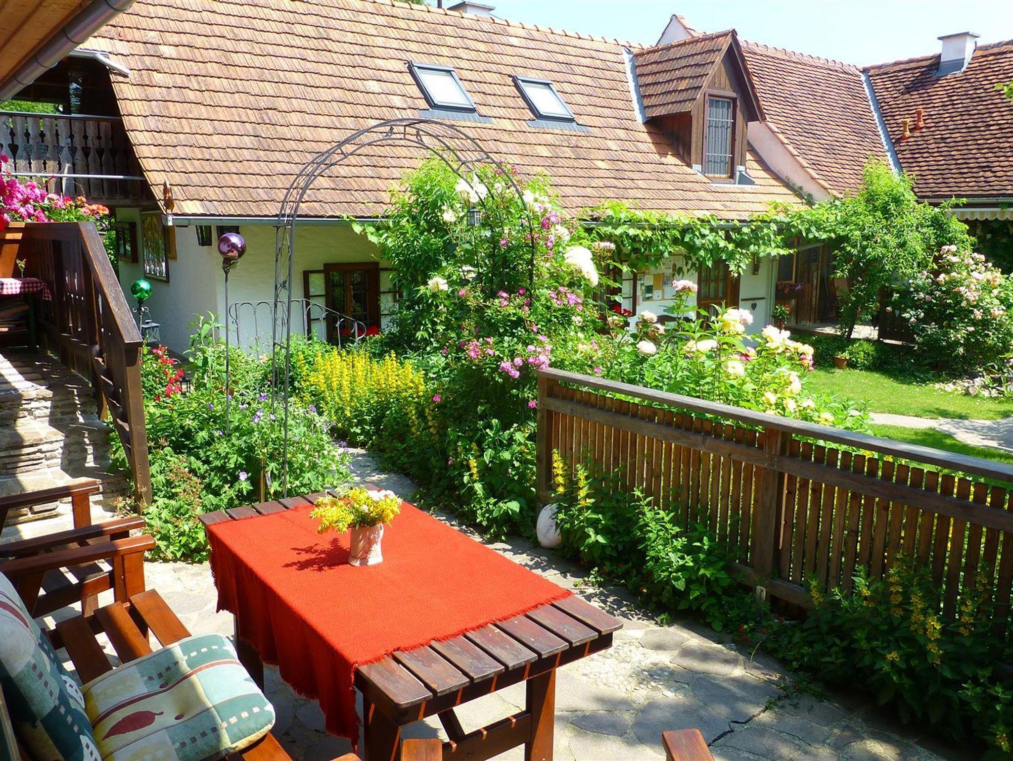 Das Romantikstöckl - ein Ferienhaus bis 3 Personen. Im EG Wohnküche mit anschließender lichtdurchfluteter Veranda und Kaminofen; Bad mit WC und Dusche, Vorraum. Großzügige ostseitige Terrasse, kleine westseitige Terrasse. Im OG Wohnschlafzimmer und anschließend ein Doppelbettzimmer mit wunderbaren Blick in den Obstgarten.