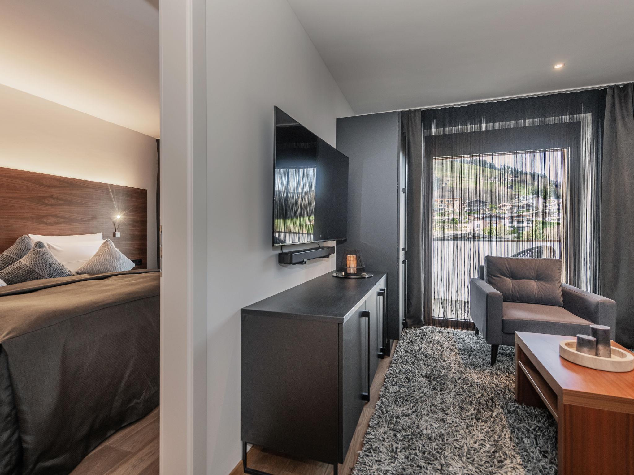 Kirchberg: Dreamlike scenery meets comfort and style! modern apartment block "Taxacher". 500 m from the skiing area. For shared use: indoor pool. In the complex: restaurant, bar, breakfast room, sauna, fitness room, steam room, relaxation room, spa area, storage room for skis, central heating system, washing machine. Parking at the house, communal covered parking (extra). Supermarket 1.8 km, bus stop "vor der Türe" 5 m, railway station "Kirchberg" 2 km. Skisport facilities, ski rental, ski school, sled run 500 m. Nearby attractions: Kitzbühel 8.5 km. Well-known ski regions can easily be reached: Hahnenkamm Kitzbühel 8.5 km. Well-known lakes can easily be reached: Schwarzsee 8.5 km.