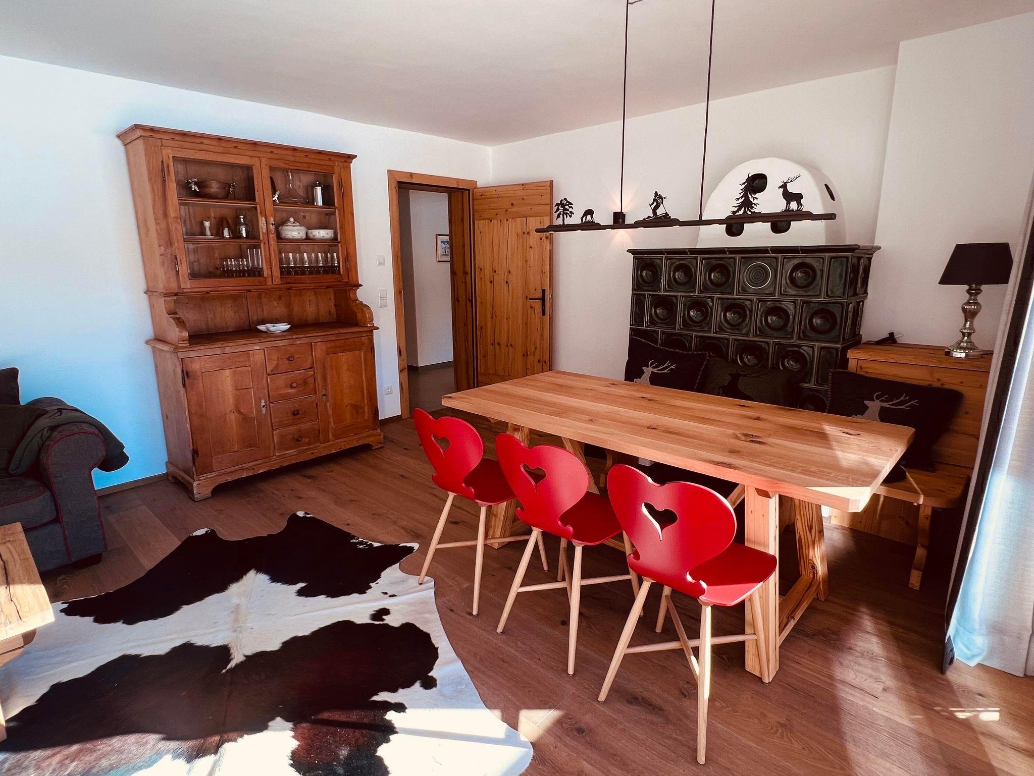 Exklusiv renoviertes 125 m² Apartment mit Wohnbereich und Kachelofen, voll ausgestatteter Küche, 3 Schlafzimmern, 2 Bädern, Gästetoilette & großer Südterrasse mit Gartenzugang. Carport, Parkplatz und Abstellraum inklusive. Atemberaubender Bergblick.
