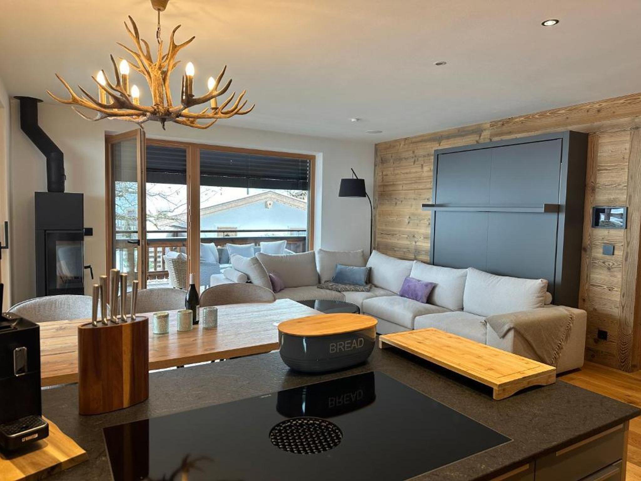 Unser 83 qm großes Chalet bietet jeglichen Wohnkomfort mit eigenem Zugang und Aufzug. Sie befindet sich im 1. Stock und ist ausgestattet mit 2 Schlafzimmern jeweils mit Bad en suite, einer voll ausgestattete Wohnküche mit Esstisch für 6 Personen, 1 WC getrennt und eine rundum Terrasse. Ein sicherer Stauraum für Ihre Skiausrüstung mit Skischuhwärmer oder für Ihre mitgebrachten Räder steht Ihnen ausserdem zur Verfügung. Eine Waschmaschine rundet das Programm ab. Wir bieten Ihnen kostenlos 2 Parkmöglichkeiten an (1 Stellplatz im Freien, 1 Stellplatz in der Tiefgarage)