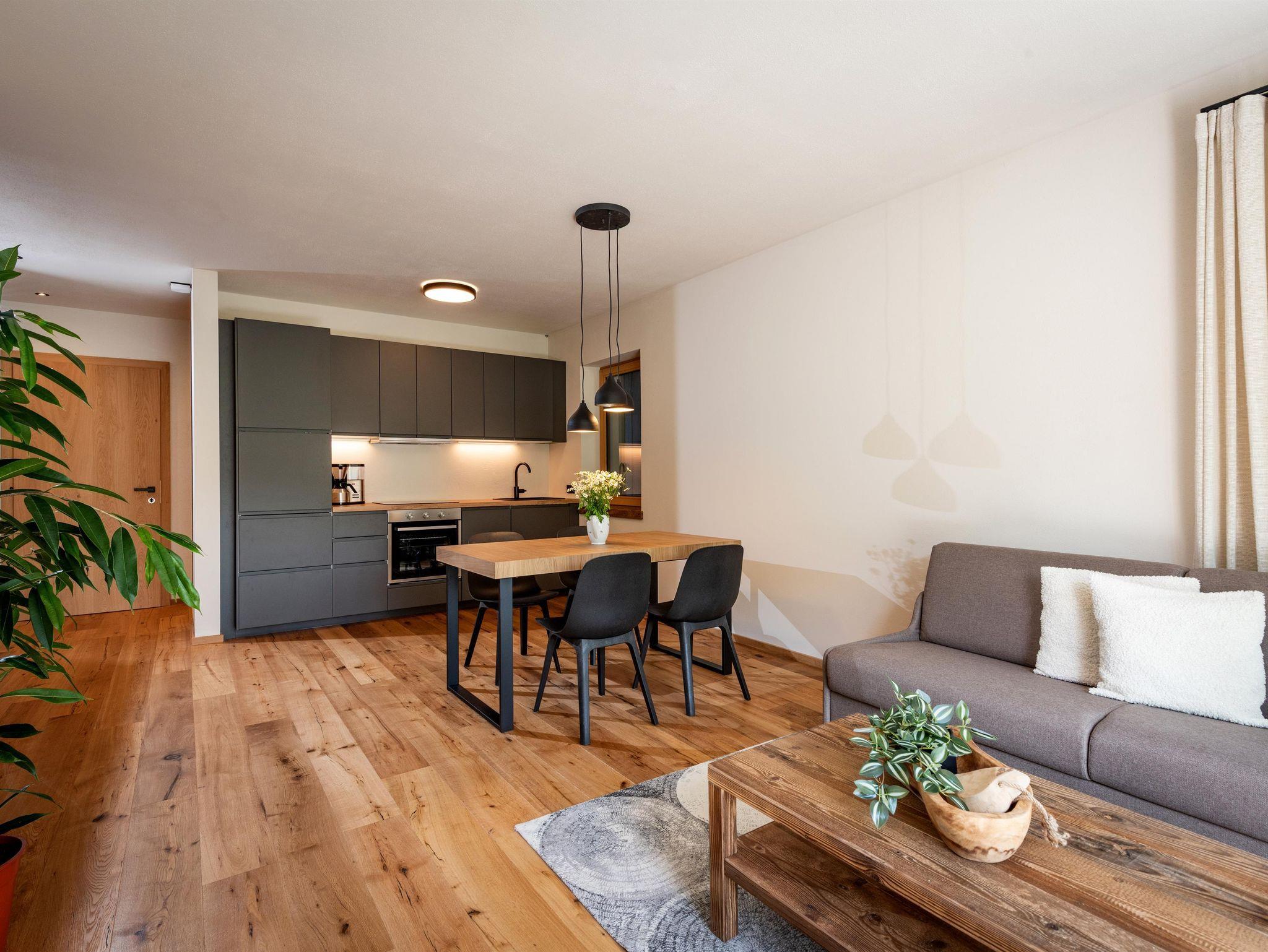 Dieses charmante Studio bietet eine Wohnfläche von 59 m² und Platz für bis zu 4 Personen (1 Schlafzimmer + 1 Doppelcouch), sowie und eine sonnige Terrasse von 10 m². Genießen Sie die ruhige Lage mit atemberaubendem Blick auf die Kitzbüheler Alpen!