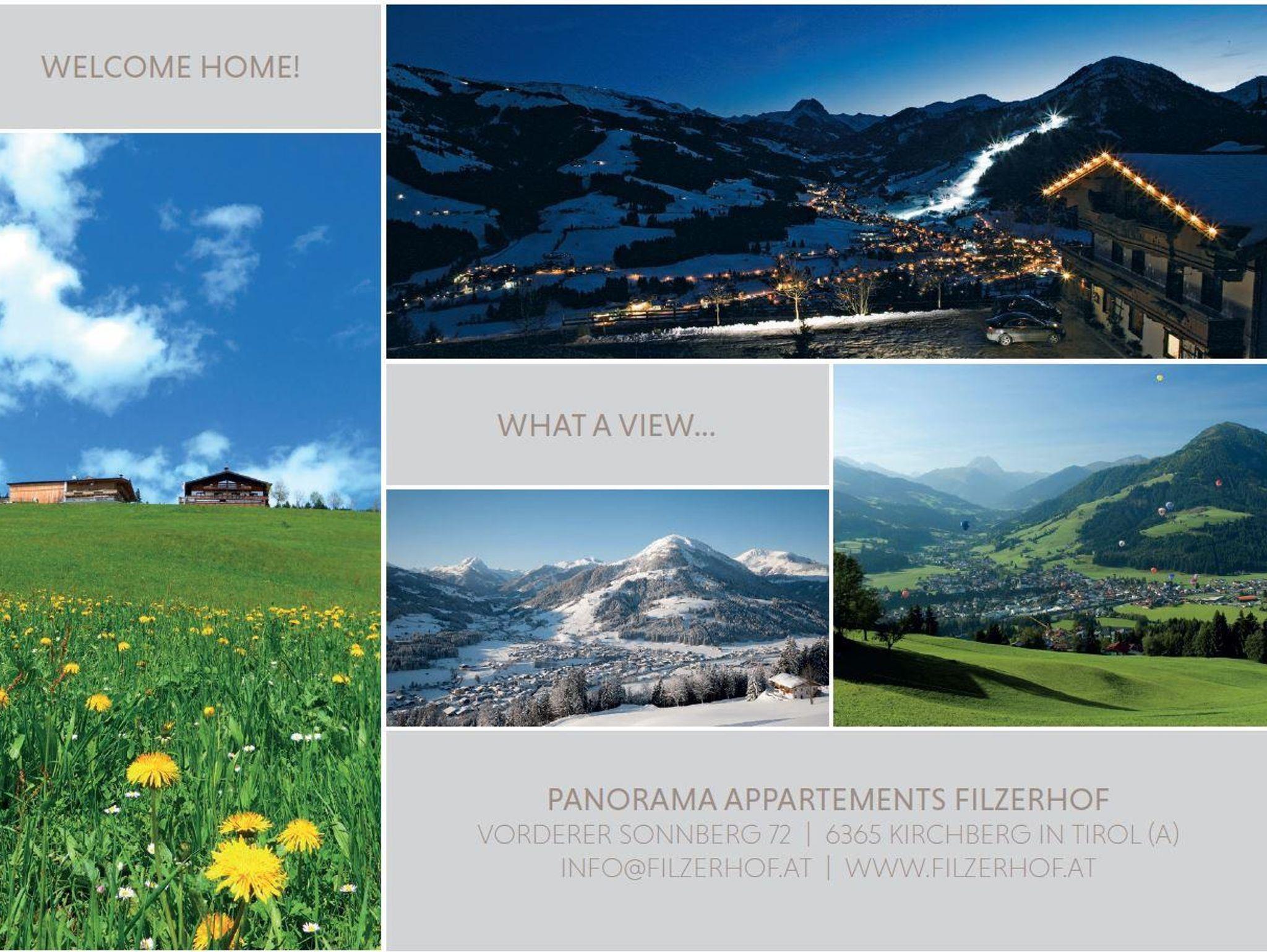 Die Filzerhof Panorama Appartements befinden sich auf 1.150m Seehöhe an der Sonnenseite von Kirchberg, von wo Sie einen unvergleichbaren 180°-Ausblick genießen können. Gönnen Sie sich Ihre Auszeit und die wohlverdienten, erholsamen Momente – nur einen Katzensprung entfernt erwartet Sie das komplette Freizeitangebot, welches die Kitzbüheler Alpen zu bieten haben.