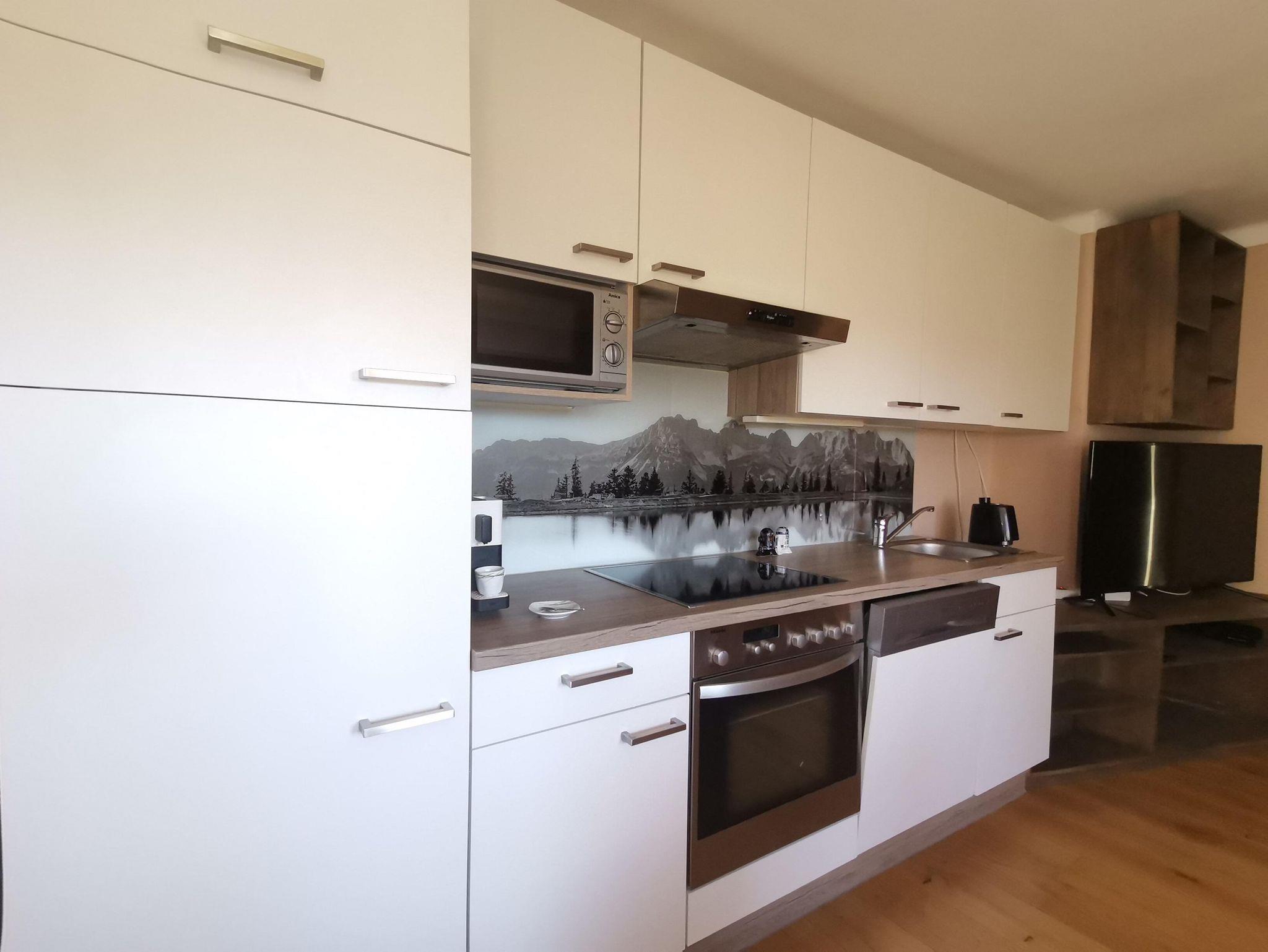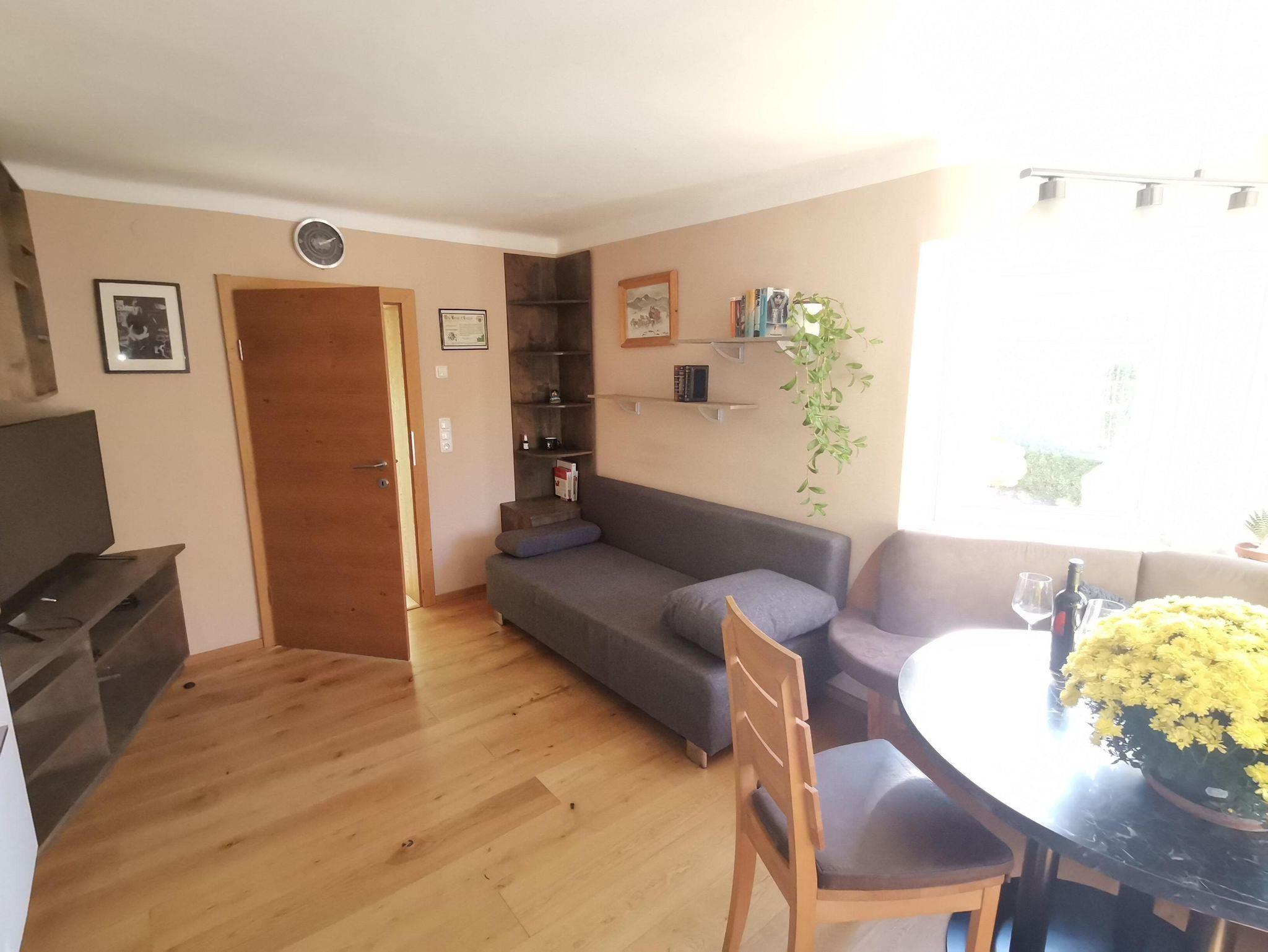 Unser gemütliches Appartement verfügt über eine Wohnküche mit ausziehbarer Schlafcouch und 1 Schlafzimmer mit Dusche/WC und bietet Platz für 3 Personen.