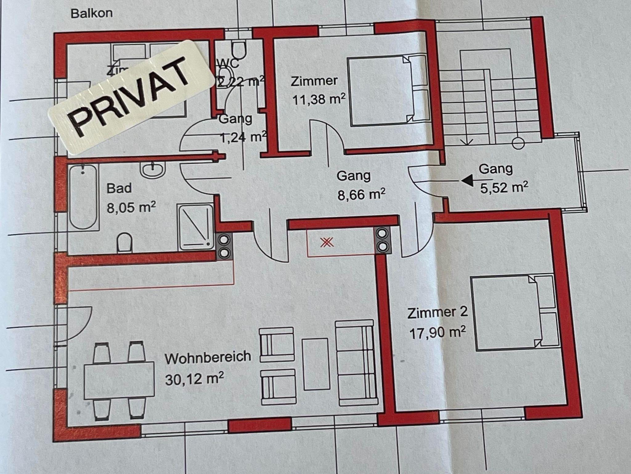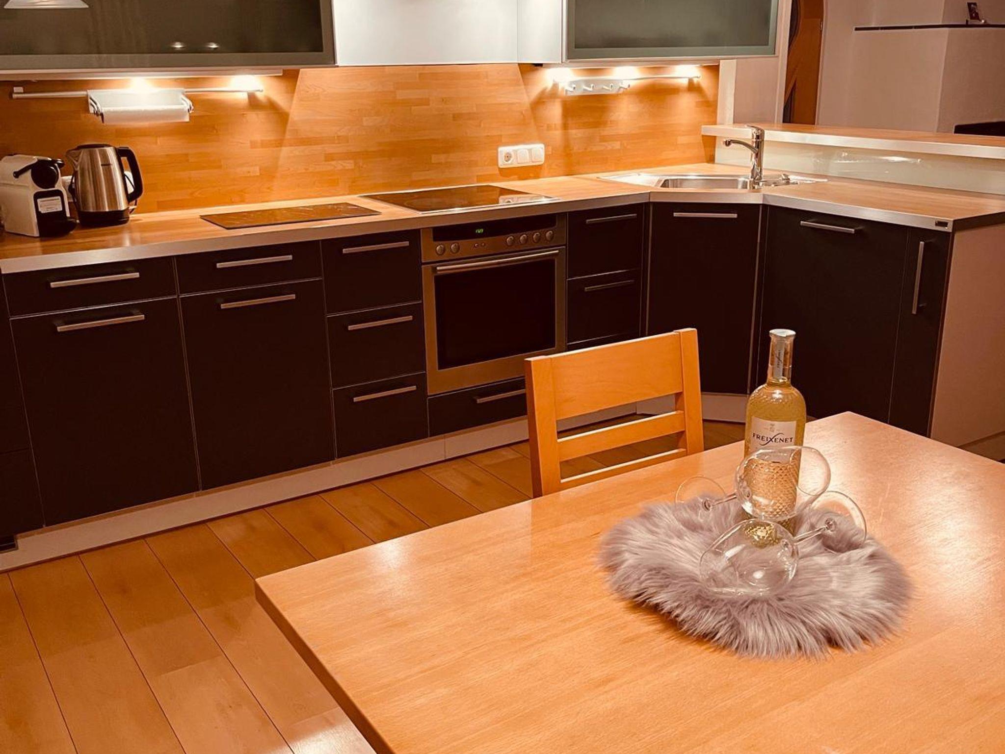 Die Ferienwohnung mit einer Größe von zirka 80 m² befindet sich im 1. Stock und verfügt über eine große gemütliche Wohnküche, welche mit einem Flachbild-TV im Wohnbereich sowie einem Geschirrspüler, Kühlschrank und einem Ofen im Küchenbereich ausgestattet ist. Weiters verfügt die Wohnung über 2 Schlafzimmer, einem großen Bad mit Badewanne, Dusche und WC, einem separatem WC, sowie einem Balkon. Die gesamte Wohnung ist mit einer Fußbodenheizung ausgestattet.