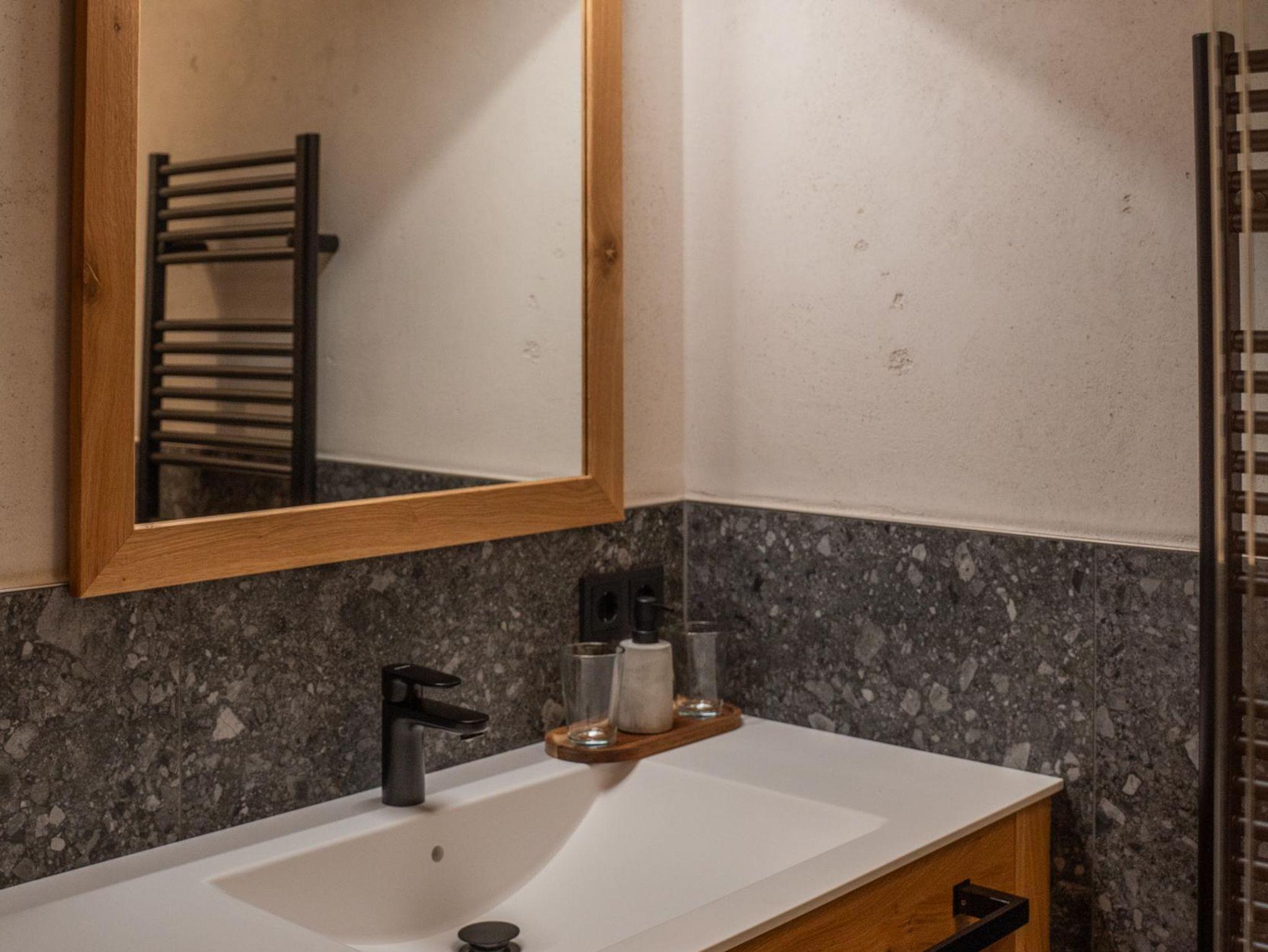 Genießen Sie zu zweit das großzügige Schlafzimmer mit Doppelbett und fühlen Sie sich im schönen Bad mit Dusche und Waschtisch rundum wohl.