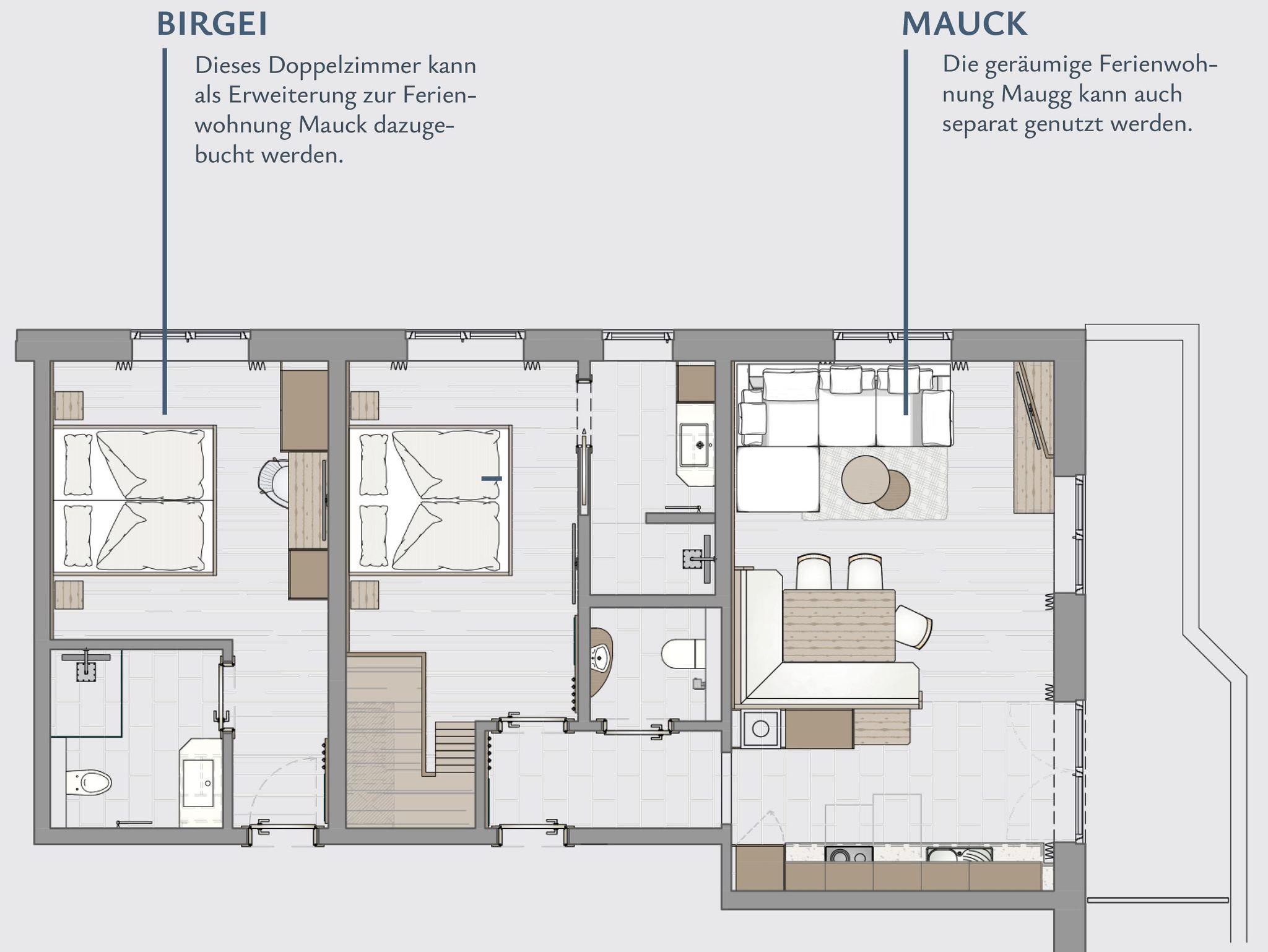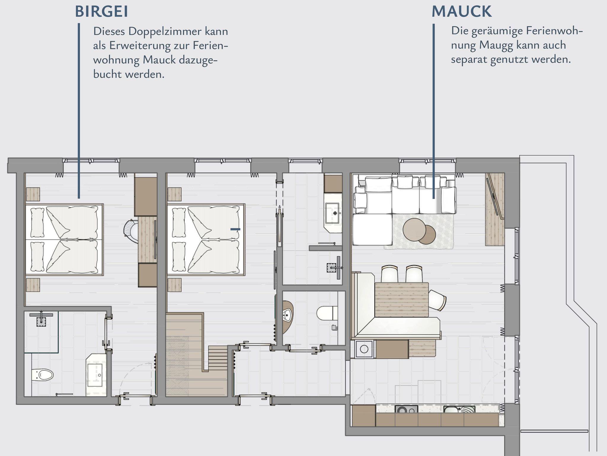 Mix & Match Diese Wohnung ist für bis zu 4 Personen durch Erweiterung mit Zimmer Birgei oder Wohnung Feldberg möglich. Sprechen Sie uns gerne an.