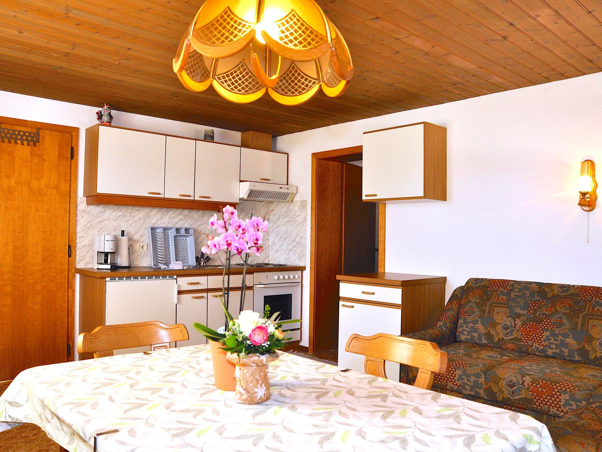 Wohnung mit 1 Schlafzimmer, Wohnküche mit ausziehbarer Doppelschlafcouch, Bad mit Dusche/WC, Balkon, WiFi inklusive.