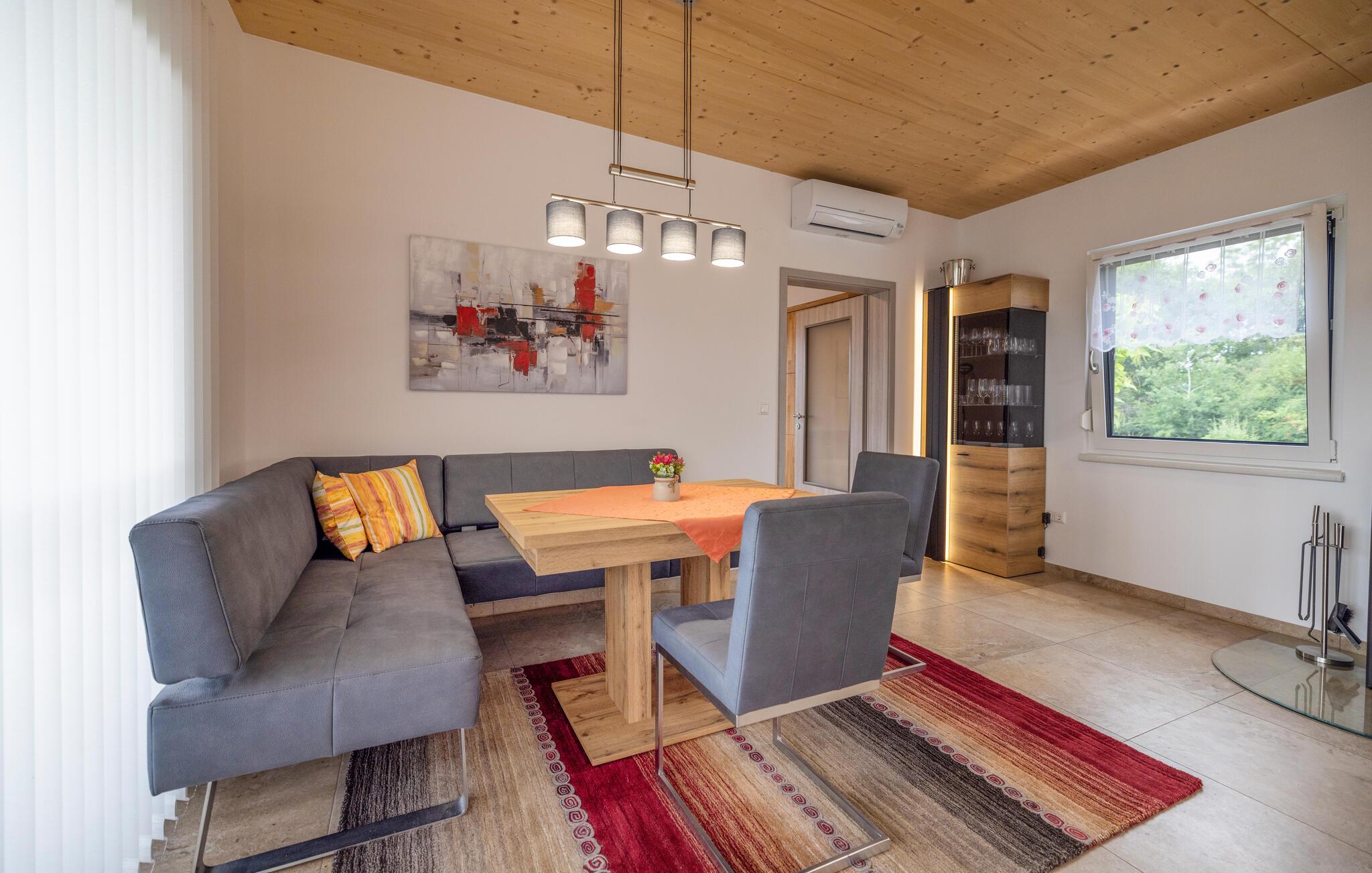 Sæt hverdagen på pause og nyd afslappende dage i dette indbydende hus. Træd ind i en smagfuld stue med moderne møbler og tiltalende farver. Her kan I slappe af efter dagens aktiviteter med gode samtaler og brætspil. Nyd måltider sammen ved spisebordet, mens I lægger planer for den næste dag.
