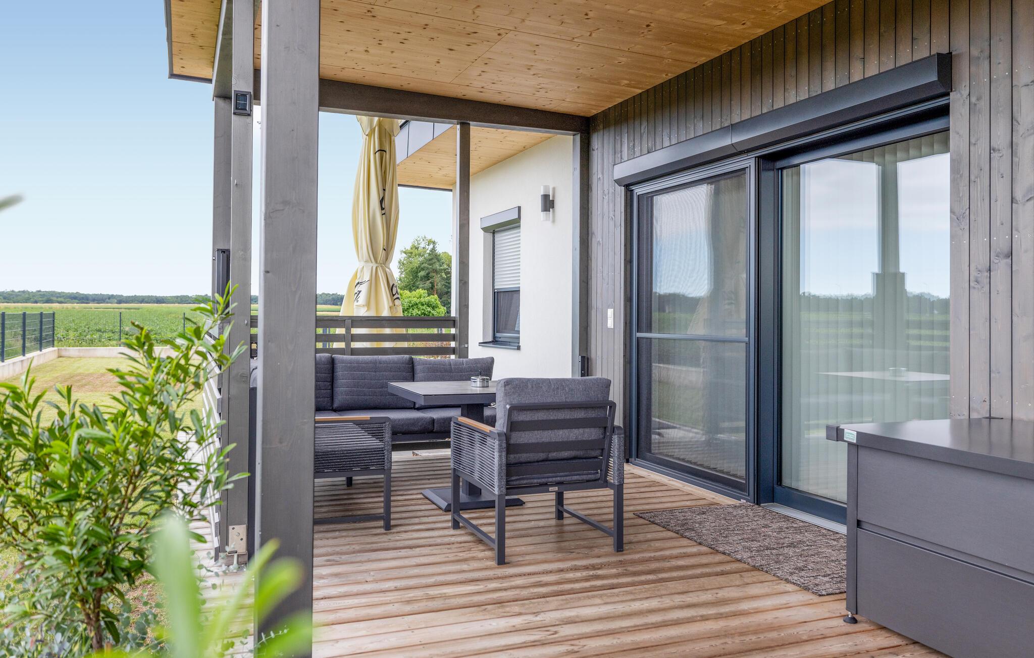 Lad jeres blik vandre over det vidtstrakte landskab fra terrassen, det er det ideelle sted for en afslappende pause på alle tider af dagen.