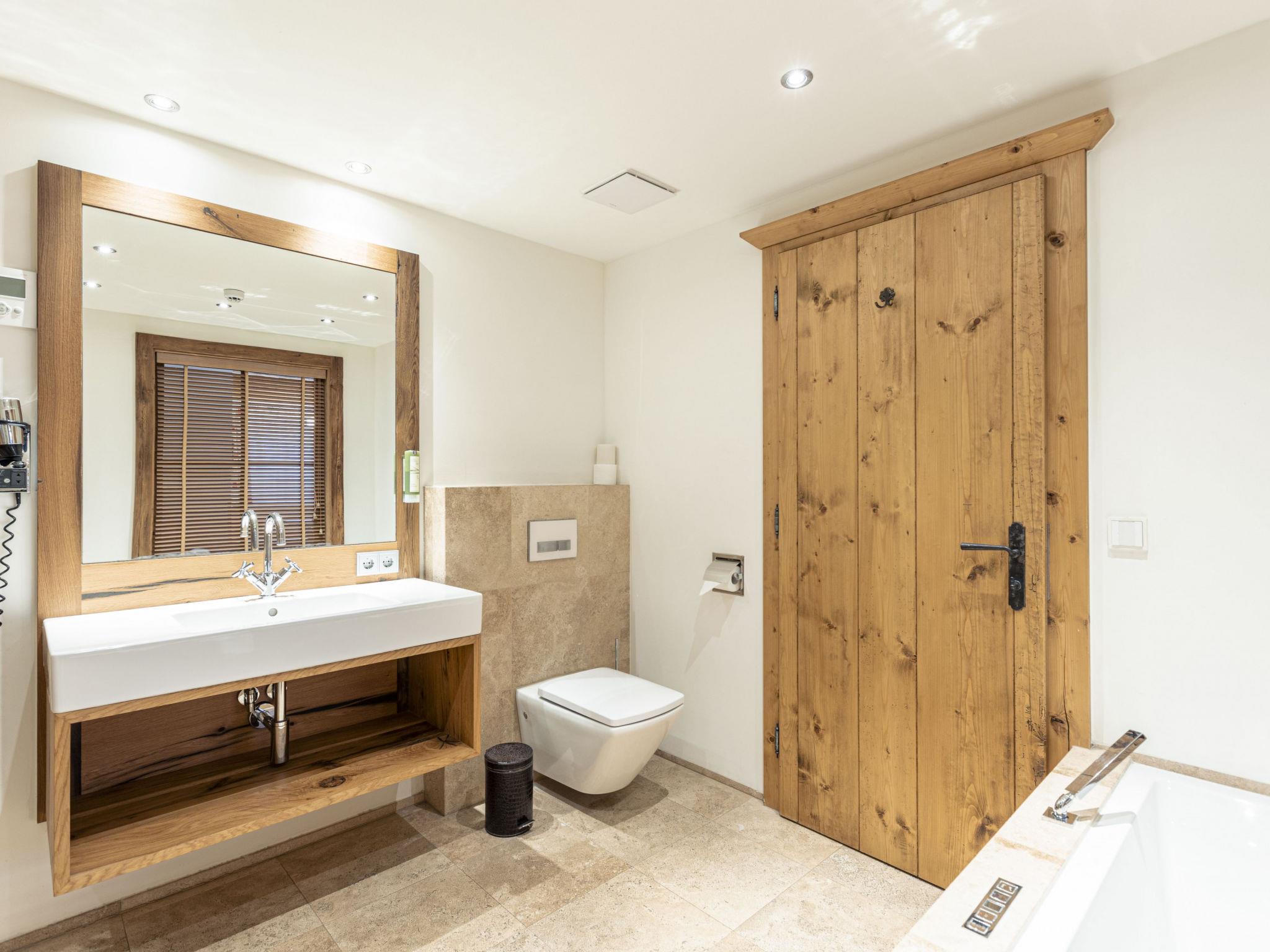 Reith bei Kitzbühel: Modern resort "Dorfresort Kitzbühel by AlpsResorts", 2 storeys. In the centre of Reith 6 km from the centre of Kitzbühel, 4 km from the lake, 5 km from the skiing area. For shared use: nat. Swimm. Pond. In the complex: sauna, steam room, hot tub, infrared sauna, relaxation room, spa area, storage room for bicycles, storage room for skis, central heating system. Parking at the house. Supermarket 500 m, restaurant 5 m, railway station "Kitzbühel Schwarzsee" 4 km. Skisport facilities 5 km, children's ski school 5 km. Well-known ski regions can easily be reached: KitzSki Hahnenkammbahn 6 km, Übungslift Reith 150 m. Well-known lakes can easily be reached: Schwarzsee 4 km. Please note: ski bus (free of charge). The holiday properties may differ in situation, size and location. Directly connected to the resort: Restaurant Reitherwirt!
