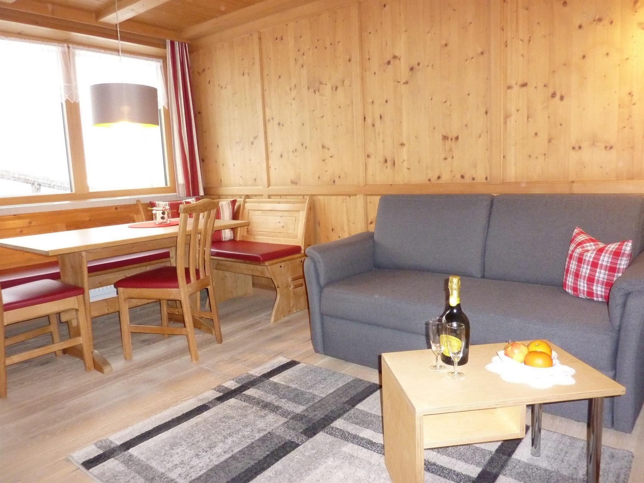 Apartment für 2-3 Personen (43m²) mit Wohnzimmer, Küche, Bad, Schlafzimmer und Südbalkon.