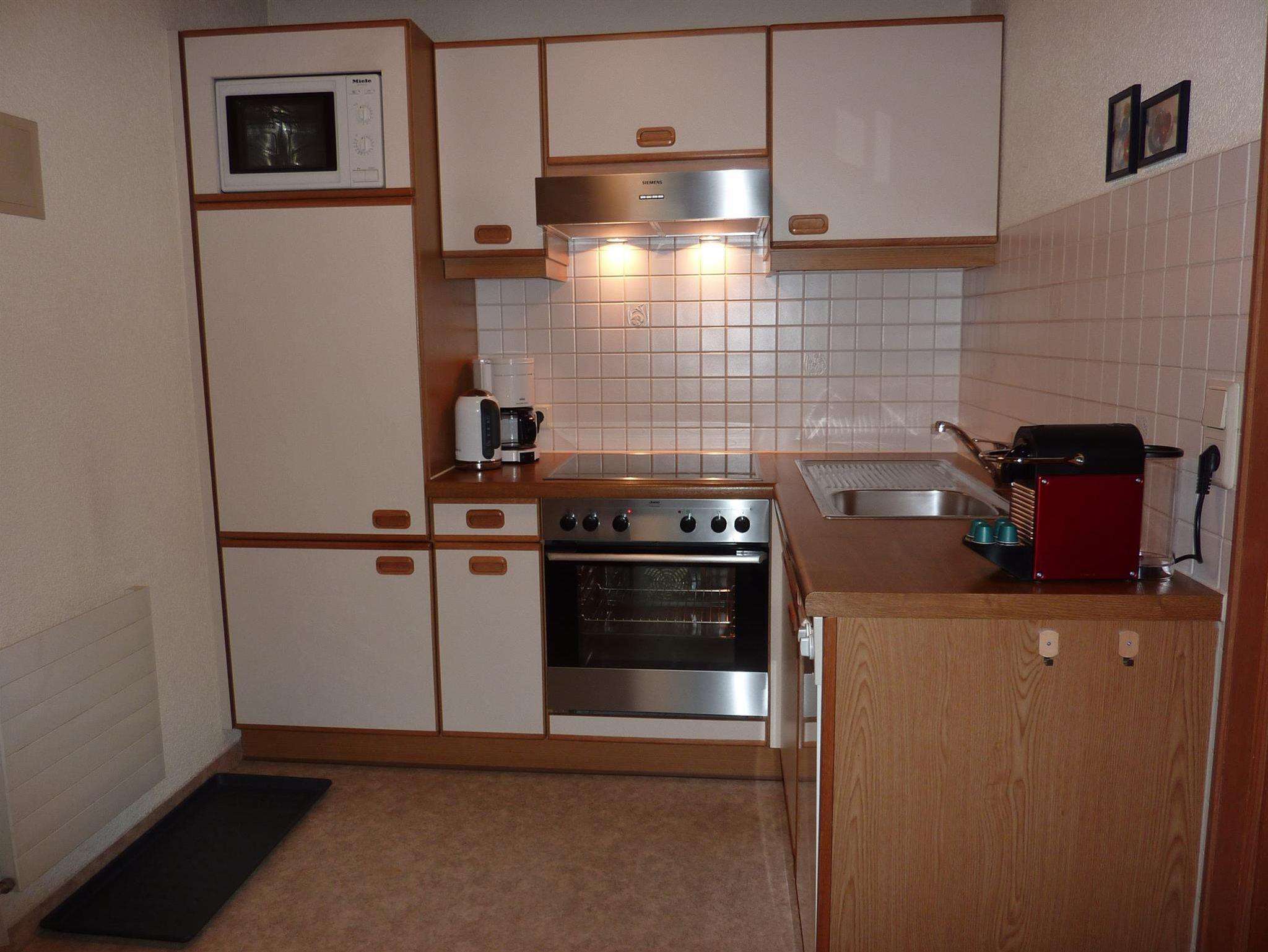 Vollholzmöbel, Spülmaschine, Mikrowelle, Kapselkaffeemaschine, Kaffeemaschine, Wasserkocher, Filtertüten, Küchenrolle, Geschirrspülmittel, Waschmittel, Spültabs, Müllsäcke und Küchenwäsche.