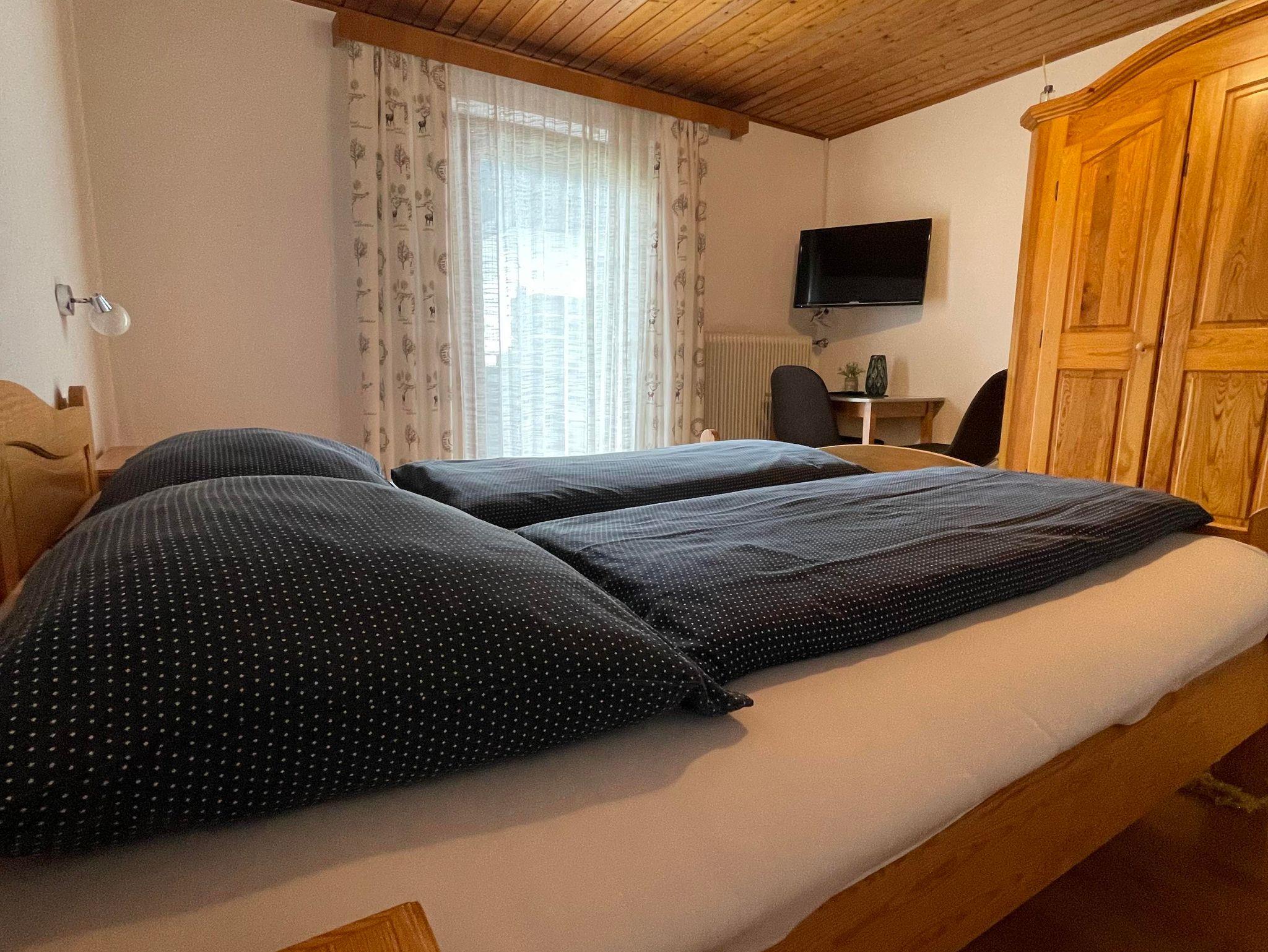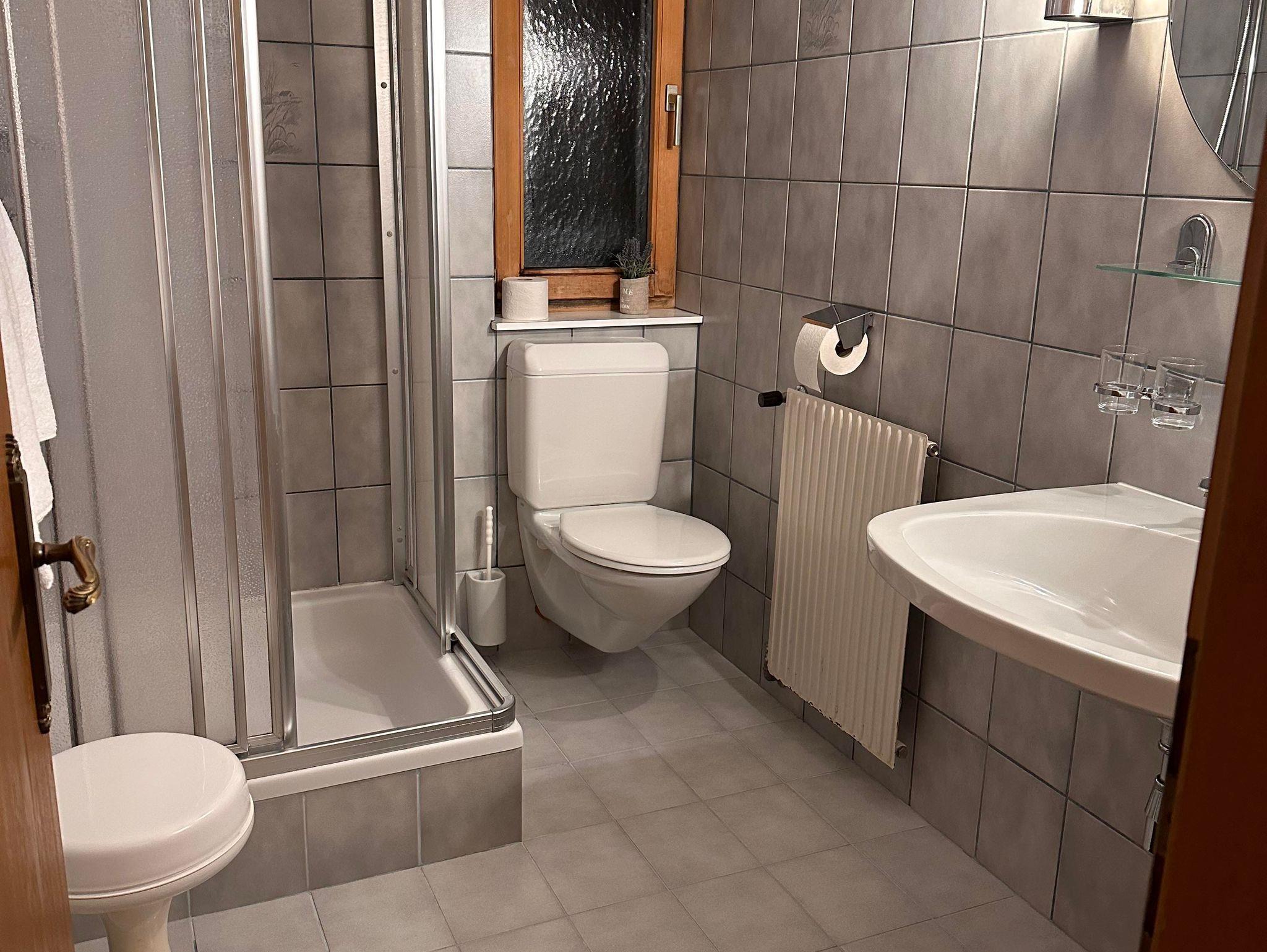 Genießen Sie Ihren Aufenthalt im gemütlichen Doppelzimmer mit eigenem Bad! Im Zimmer haben Sie ein Kingsize-Bett, einen großen Kleiderschrank, einen Fernseher und einen Tisch mit zwei Stühlen. Eines der von uns angebotenen Doppelzimmer hat Zugang zum Balkon. Das Zimmer verfügt über ein eigenes Bad mit Waschbecken, Dusche und Toilette. Bettwäsche und Handtücher stellen wir kostenlos zur Verfügung. Sie haben auch Zugang zu einer großen, voll ausgestatteten Gemeinschaftsküche. Sie können gerne den Kühlschrank und andere Geräte benutzen, um Ihre Mahlzeiten zuzubereiten. Wir haben eine Kaffeemaschine für Filterkaffee und Nespresso, die Ihnen zur Verfügung stehen. Wir haben Platz für Ihre Skier sowie einen Skischuhtrockner. In Ihrem Zimmer und im ganzen Haus haben Sie Highspeed-WLAN.