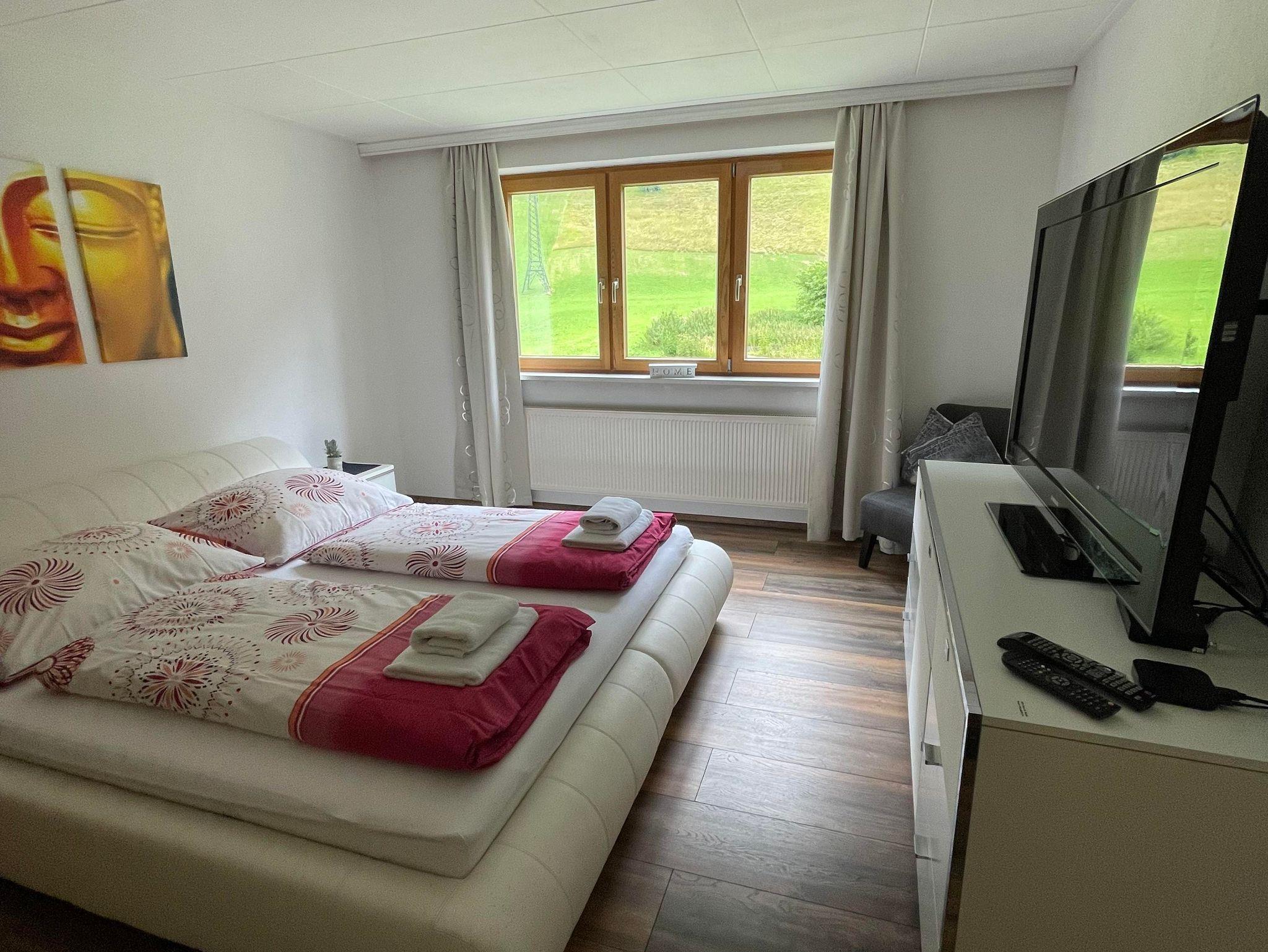 Genießen Sie Ihren Aufenthalt im gemütlichen Familienzimmer mit Gemeinschaftsbad! In dem Zimmer haben Sie ein großes Schlafzimmer mit einem Kingsize-Bett, einem großen Kleiderschrank, einem Fernseher und Stühlen. Im anderen Zimmer haben Sie ein Schlafsofa, das als bequemes Bett für weitere 1-2 Gäste genutzt werden kann. Direkt neben dem Zimmer befindet sich ein Badezimmer, das nur mit einem weiteren Zimmer geteilt wird. Im Badezimmer haben Sie Badewanne, Waschbecken und Toilette. Bettwäsche und Handtücher stellen wir kostenlos zur Verfügung. Sie haben auch Zugang zu einer großen, voll ausgestatteten Gemeinschaftsküche. Sie können gerne den Kühlschrank und andere Geräte benutzen, um Ihre Mahlzeiten zuzubereiten. Wir haben eine Kaffeemaschine für Filterkaffee und Nespresso, die Ihnen zur Verfügung stehen. Wir haben Platz für Ihre Skier sowie einen Skischuhtrockner. In Ihrem Zimmer und im ganzen Haus haben Sie Highspeed-WLAN.