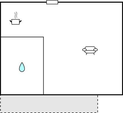 Opholdsstue/køkken - 2 Sovepladser. (Dobbeltseng(e)).